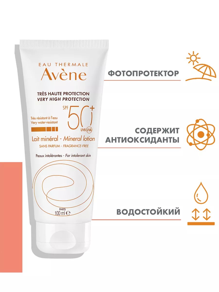 Avene АВЕН Солнцезащитное минеральное молочко SPF 50+, 100 мл
