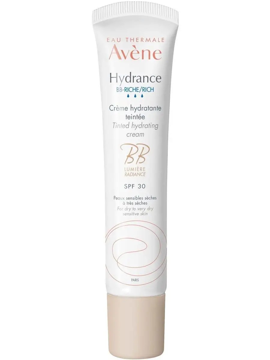 Увлажняющий тональный крем для сухой и обезвоженной кожи, 40 мл, Гидранс bb крем для лица увлажняющий крем для лица avene hydrance riche с spf, для сухой, чувствительной, тональный, обезвоженной, тонирующий эффект, солнцезащитный. Универсальное средство Avene Hydrance BB Riche для ежедневного ухода и защиты – увлажняющий крем для лица с лёгким тонирующим эффектом подходит для большинства оттенков кожи, выравнивая ее цвет. С первого использования крем увлажняет, улучшает цвет лица и защищает от воздействия УФ-лучей. Увлажняющий комплекс Cohederm обеспечивает длительное увлажнение в течение всего дня; комбинации перламутровых и минеральных пигментов, которые таят на коже, возвращая коже сияние и здоровый отдохнувший вид; комплекс с SPF 30 обеспечивает эффективную ежедневную защиту. Легкая нежирная текстура BB-крем для лица Авен оставляет на коже ощущение мягкости и комфорта. Цвет лица выравнивается и становится ярче, кожа приобретает естественное здоровое сияние. Преимущества: Первостепенный уход для естественного здорового сияния кожи. Делает кожу мягкой и комфортной. Обеспечивает длительное ее увлажнение. Улучшает цвет лица. Действует как солнцезащитный крем: защищает от агрессивного воздействий солнечных лучей. Французская косметика, Авен, Авене, Avene.