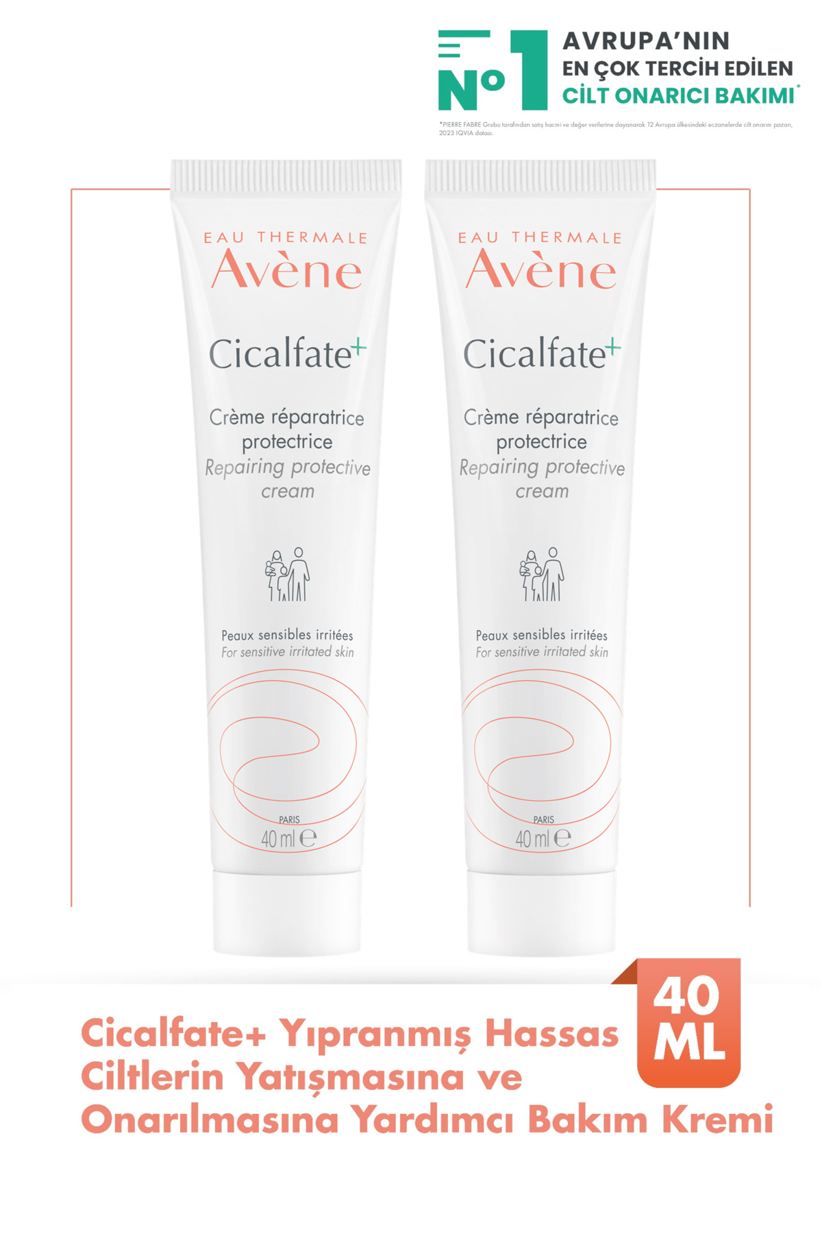 Avene Cicalfate+ Repair and Soothe Care Cream for Damaged Sensitive Skin 40 Ml x2