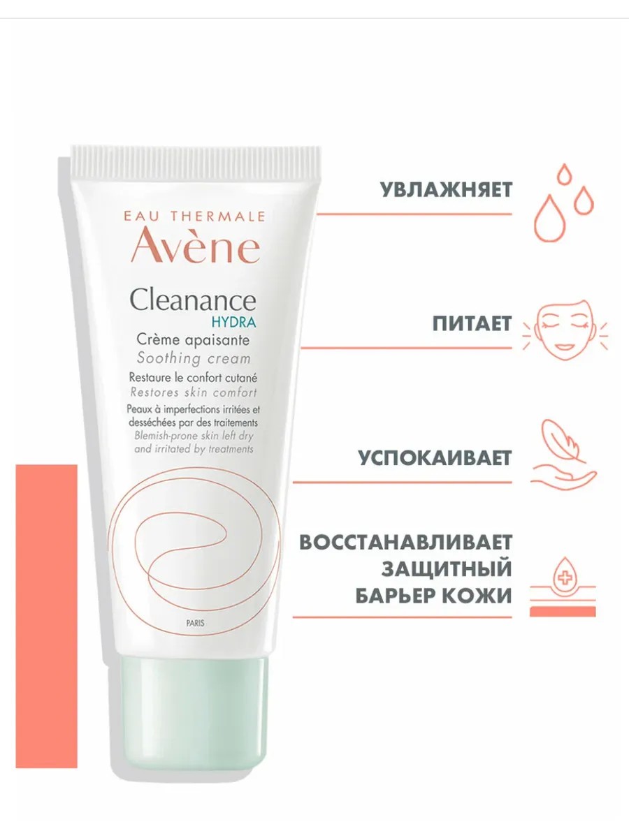 Успокаивающий крем Cleanace Hydra питает, увлажняет, восстанавливает комфорт чувствительной кожи, раздраженной и пересушенной в ходе лечения акне. Насыщенный крем без содержанию масел. • Декстран сульфат успокаивает раздражения и снимает покраснения на коже. • Благодаря эффекту резервуара Гликолеол помогает восстановить поврежденную гидролипидную пленку кожи для длительного комфорта. • Термальная вода Avène обеспечивает успокаивающее действие, снимает раздражение кожи.