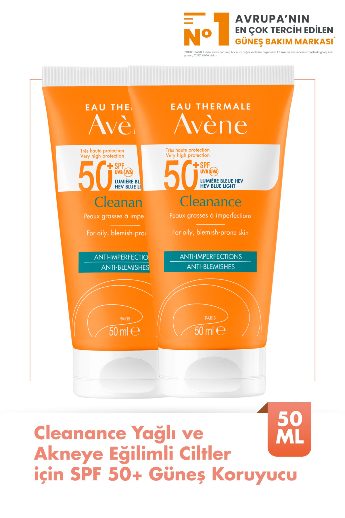 Avene Cleanance SPF 50+ High Protection Sun Cream for Oily and Acne Prone Skin 50 ml x2