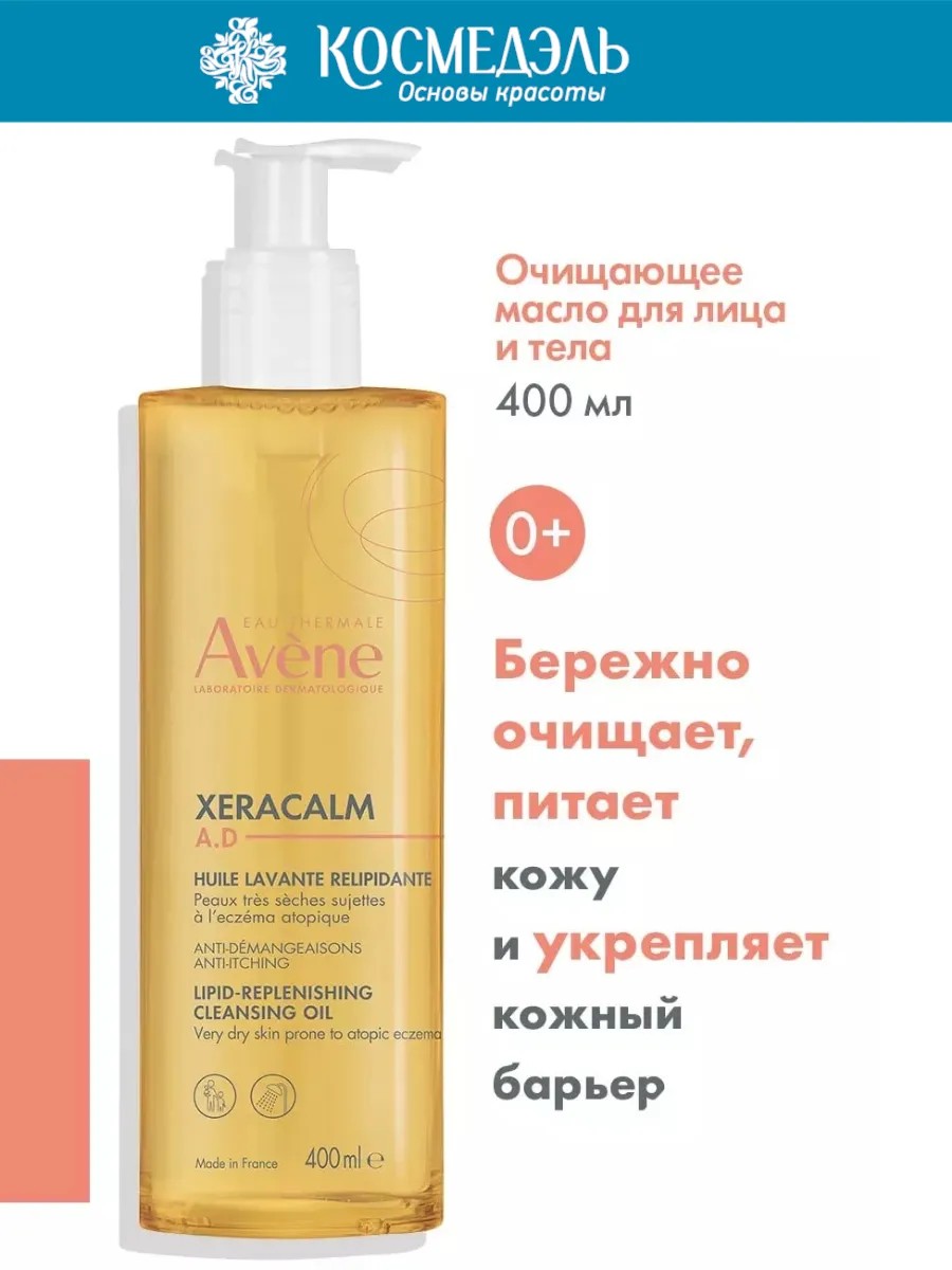 Формула липидовосполняющего масла XeraCalm A.D. была специально разработана для сухой кожи младенцев, детей и взрослых с использованием минимума компонентов. Комплекс I-modulia снижает зуд и сухость кожи, а также успокаивает раздражения и покраснения, вызванные гиперреактивностью кожи. Комплекс липидов Cer-Omega сохраняет естественный липидный баланс кожи. Термальная вода Avene обладает успокаивающими и увлажняющими свойствами.