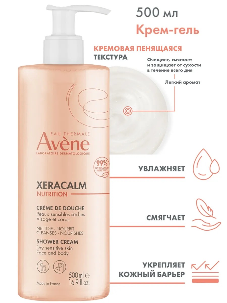 AVENE XERACALM Nutrition Лёгкий питательный очищающий крем-гель 500 мл.