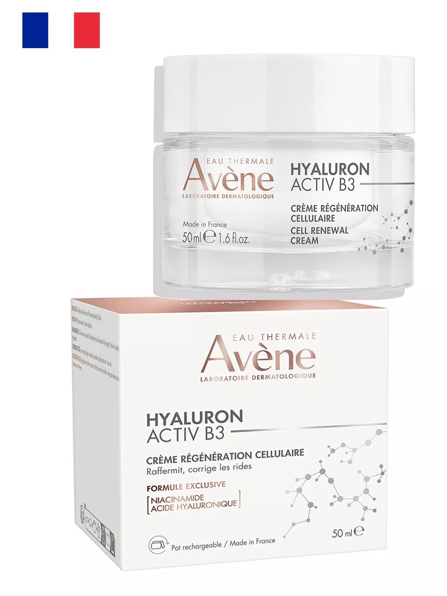 Immerse yourself in a world of luxurious care with Avene Hyaluron Activ B3 regenerating day cream. This premium product, made in France, is the perfect gift for any woman who values quality and effectiveness. Hyaluron Activ B3 cream features a unique formula developed by Avene dermatological laboratories. Pure hyaluronic acid and niacinamide target the causes of skin aging, ensuring firmness, smoothing wrinkles, and a radiant complexion. Thanks to its high concentration of active ingredients, Hyaluron Activ B3 cream provides intensive care for all skin types, including sensitive skin. Its velvety texture with a delicate scent comforts the skin and makes it an ideal makeup base. The cream's eco-friendly formula, containing 92% natural ingredients, makes it not only effective but also safe for the skin. Indications for use include wrinkles, loss of elasticity, and a dull complexion. Apply morning and/or evening to the face, neck, and décolleté for maximum effect. Immerse yourself in a world of luxury and beauty with Avène Hyaluron Activ B3 Regenerating Day Cream—your path to youthful, perfect skin. Wrinkles and fine lines, loss of elasticity and firmness, and a dull complexion are alleviated. Suitable for all skin types.