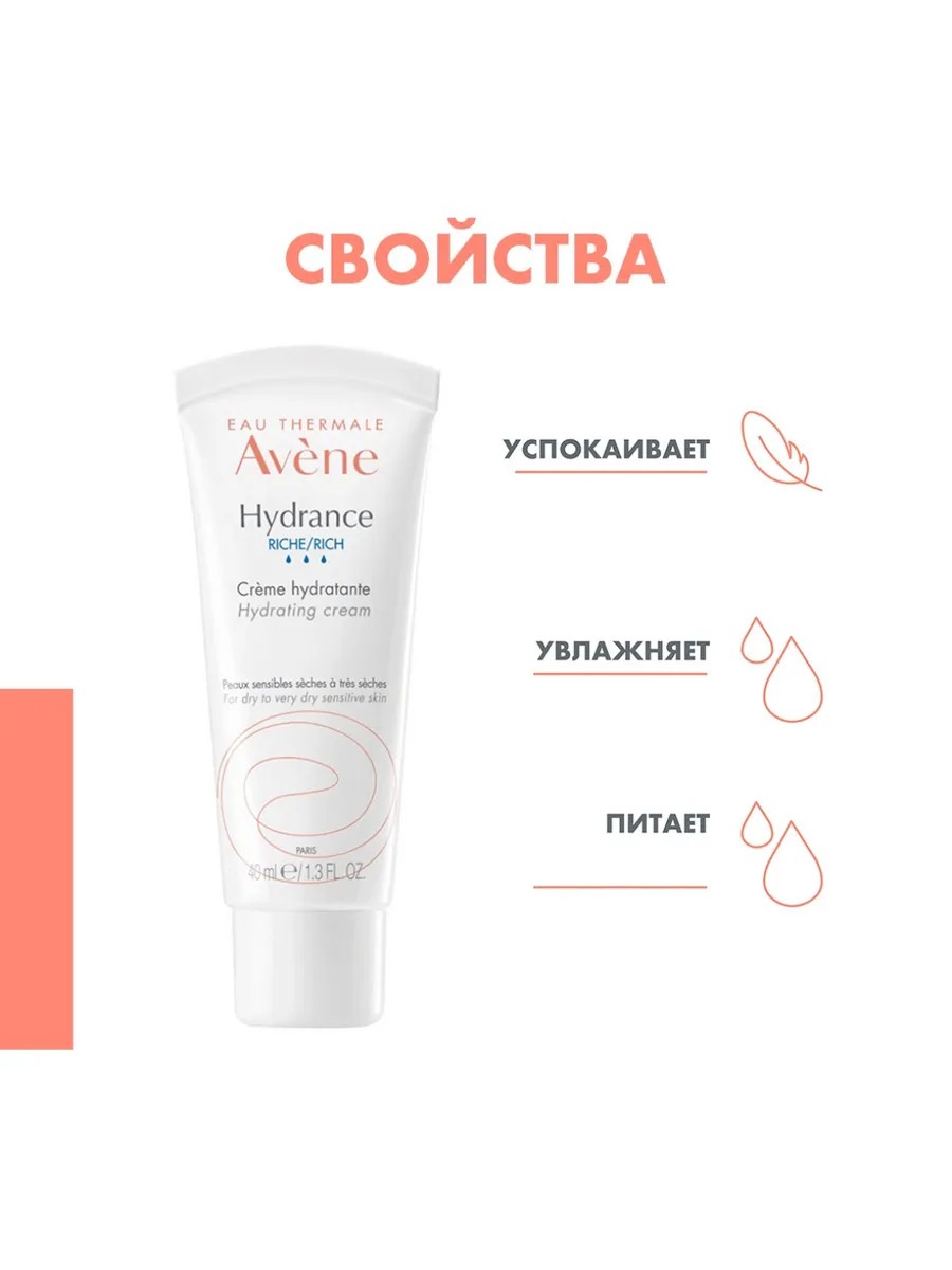 Avene HYDRANCE Крем увлажняющий RICH 40 мл - Крем подходит для увлажнения и питания сухой кожи и решает такую проблему, как обезвоженность.