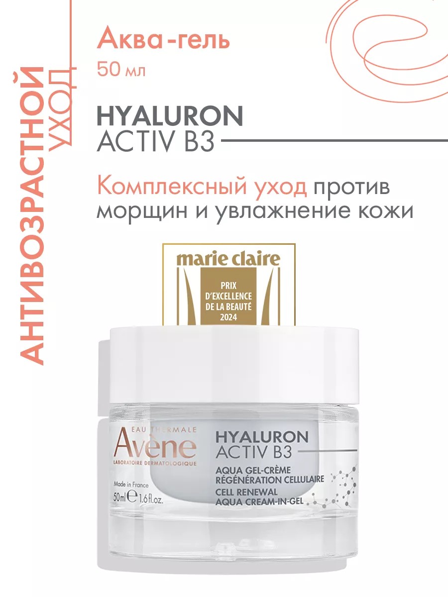 A comprehensive product for smooth, radiant skin and long-lasting hydration. 2-in-1: can be used as a day care and as a mask. Light, refreshing texture. Recommended for all skin types, for dry and normal skin. Age restrictions: 18+. INDICATIONS: wrinkles, fine lines, loss of firmness and elasticity, dull complexion. RESULT OF APPLICATION: stimulates cellular regeneration, prolonging the youthfulness of the skin, moisturizes, smoothes the skin and restores lost volume. ACTIVE INGREDIENTS: niacinamide 6% - long-term stimulates cellular regeneration, prolonging the youthfulness of the skin (in-vitro test); hyaluronic acid - pure, natural origin, high and low molecular weight, moisturizes, smoothes the skin and restores lost volume. INGREDIENTS: avene thermal spring water (avene aqua). glycerin. Niacinamide. Squalane. Diglycerin. Persea gratissima (avocado) oil. Hydroxyethyl acrylate/sodium acryloyldimethyl taurate copolymer. Polyglyceryl-10 myristate. Sodium hyaluronate. Adenosine. 1,2-hexanediol. Behenyl alcohol. Caprylic/capric triglyceride. Caprylyl glycol. Caramel. Citric acid. Fragrance (parfum). Polysorbate 60. Sodium citrate. Sorbitan isostearate. Tocopheryl glucoside. Water (aqua). Xanthan gum. APPLICATION: Apply morning and/or evening to face, neck, and décolleté. Complete the treatment with serum from the Avene Hyaluron Activ B3 range. Can be used as a mask. An excellent makeup base. Shelf life is 36 months.