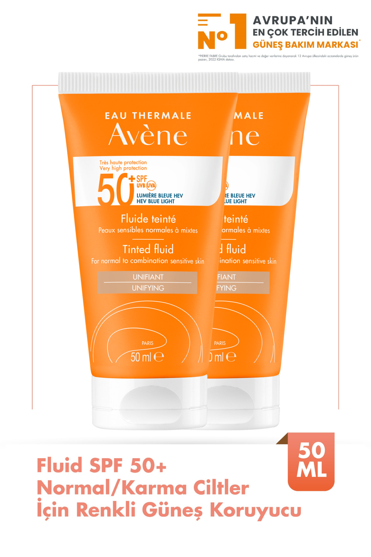 Avene Tinted Fluid SPF 50+ Tinted Sunscreen for Normal or Combination Skin 50 ml x2 DKUr n317