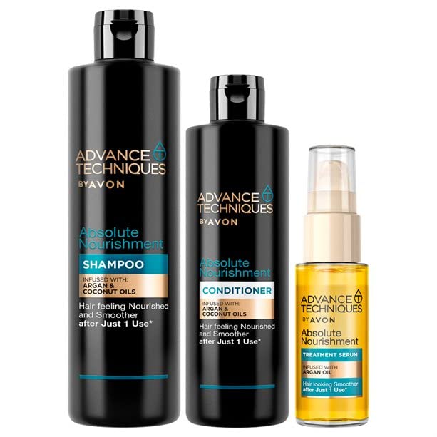 AVON Advance Techniques Moroccan Argan Oil Hair Care Set 3Piece ShampooRinseSerum