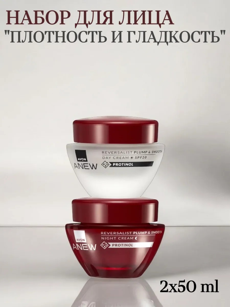 Дневной крем для лица "Совершенство" SPF 25, 50 мл.Ночной крем для лица "Обновление", 50 мл.Средства серии Anew с технологией Protinol от содержат сыворотку Protinol, которая восстанавливает каркас из детского коллагена III и активирует выработку коллагена I.Вместе они создают матрицу, которая выталкивает морщины изнутри и восстанавливает упругость. 9 из 10 женщин подтвердили, что их кожа в 2 раза более увлажненная и выглядит заметно моложе уже через 2 дня.*Серия разработана специально для борьбы с морщинами, недостаточным объемом, тонкими линиями.Технологоия протинол + фитол увеличивает выработку гиалуроновой кислоты более чем на 100% всего за 48 часов, наполняет кожу влагой и сокращает морщины. Подбери свой уход от Эйвон соотвественно возрасту и потребностям твоей кожи. Кремы отлично подойдут как подарочный набор на 8 Марта; Новый год; День рождения; День мамы; День учителя. Или просто в качестве приятного знака внимания любимым дамам: жене; бабушке; маме; сестре; подруге
