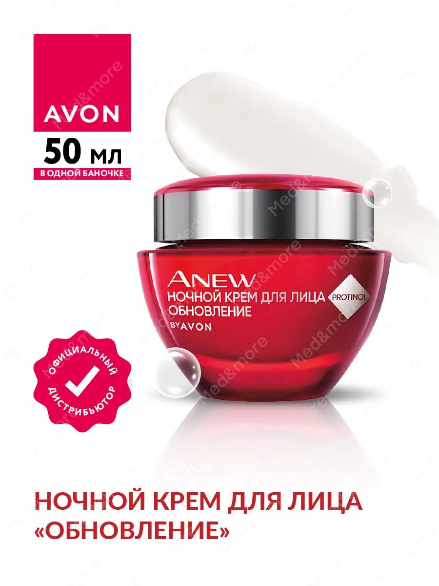 Ночной крем Avon Обновление можно использовать как в качестве дневного, так и ночного ухода, что делает его универсальным средством в вашей косметичке. Поддерживайте свою кожу в идеальном состоянии и заботьтесь о ее молодости с помощью этого инновационного крема от Avon.