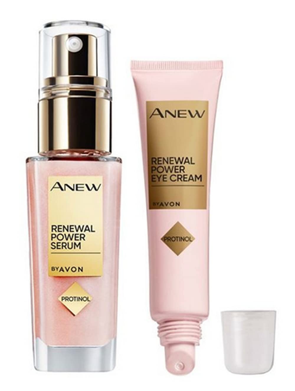 Ready to discover the ultimate skincare power couple? Look no further! Anew Renewal Power Serum now has its perfect power partner - Anew Renewal Power Eye Cream, by Avon. Let's start with the serum. Formulated with Protinol Technology and niacinamide, it helps to restore the look of years of collagen loss to give you 7 powerful age-defying benefits in 7 days. We're talking a reduction in fine lines, firmer, smoother-looking skin, minimised appearance of pores, and stronger-feeling skin with more resilience and a radiant-looking glow. "But what about my eyes?", we hear you ask. Enter Anew Renewal Power Eye Cream. Thanks to Light Diffusion Technology that optically reflects light away from the skin, this age-defying eye cream instantly blurs and brightens the look of your eye area for a more wide-awake look. It's also formulated with Protinol Technology to reduce the appearance of lines and wrinkles over time. Product specifications: Formulated with Protinol which works faster than products with retinol. Must-have eye cream (15ml) that instantly blurs and brightens the look of the eye area and reduces the look of wrinkles over time. Iconic serum (30ml) for 7 visible skin benefits in 7 days. Perfect for all skin types (even sensitive skin), tones and ages. How to use me: Serum - After cleansing, massage one pump of the serum all over your face and neck. Eye Cream - Follow your serum with half a pea-sized amount of eye cream around the eye contour area, above and below the eyes. Massage it in with the specially designed applicator, using a light and outward sweeping motion, patting in any excess with your ring finger.stronger-feeling skin with more resilience and a radiant-looking glow. minimised appearance of pores. Reduction in fine lines, firmer, smoother-looking skin. Restore the look of years of collagen. Age-defying eye cream instantly blurs and brightens the look of your eye area. Formulated with Protinol which works faster than products with retinol.