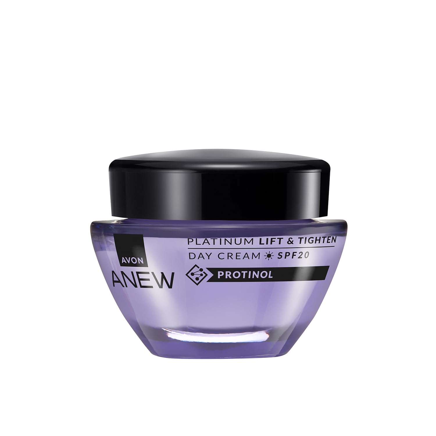 Enjoy firmer, more protected skin with Avon's Anew Platinum Lifting Day Cream SPF 20, designed for mature skin looking to reduce the visible signs of aging and restore skin elasticity. This day cream combines powerful firming action with SPF 20 sun protection to prevent UV damage while helping to redefine facial contours. Enriched with Protinol™, its advanced formula works on the skin's layers, improving firmness and smoothness while reducing the appearance of fine lines and wrinkles. Perfect for skin aged 50 and over, Anew Platinum Day Cream deeply moisturizes without leaving a greasy feel. Protinol™ technology is exclusive to Avon and has received international awards for achieving dual topical boosting of two types of collagen (I and III) with visible results in just 7 days. Perfect for skin aged 50 and over, Anew Platinum Day Cream not only combats the signs of aging but also deeply nourishes, restoring a revitalized appearance. Visibly rejuvenated, firm, and protected skin every day with Anew Platinum. DIRECTIONS FOR USE Apply the cream 30 minutes before sun exposure.Soft and easily absorbed texture: This light, non-greasy cream is quickly absorbed, leaving skin feeling soft. Ideal for mature skin: Recommended for mature skin over 50. SPF 20 sun protection: Protects against sun damage, helping to prevent premature aging caused by UV rays. ADVANCED FORMULA: Formulated with Protinol™, an exclusive technology that provides a double boost to collagen. Helps combat visible signs of aging, such as deep wrinkles, fine lines, and sagging, thanks to its advanced formula. ANEW Platinum Lifting Day Cream: Redefines facial contours and improves firmness, providing a visible lifting effect on mature skin.AVON Anew Platinum SPF 20 Crème de jour avec effet liftant – Formulée avec ProtinolTM – raffermit et protège la peau contre les signes de l'âge – 50 ml Crème de jour PlatinumDESCRIPTION DU PRODUIT DESCRIPTION DU PRODUIT Profitez d'une peau plus ferme et protégée avec la crème de jour effet lifting Anew Platinum SPF 20 d'Avon, conçue pour les peaux matures qui cherchent à réduire les signes visibles de l'âge et à retrouver l'élasticité de la peau. Cette crème de jour combine une puissante action raffermissante avec une protection solaire SPF 20, pour prévenir les dommages causés par les rayons UV tout en aidant à redéfinir les contours du visage. Enrichi en ProtinolTM, sa formule avancée agit sur les couches de la peau, améliorant la fermeté et la douceur, tout en réduisant l'apparence des rides et ridules. Parfaite pour les peaux à partir de 50 ans, la crème de jour Anew Platinum hydrate en profondeur sans laisser de sensation grasse. La technologie ProtinolTM est exclusive à Avon et a été récompensée au niveau international pour avoir obtenu un double renforcement topique de deux types de collagène (I et III) avec des résultats visibles en seulement 7 jours. Parfaite pour les peaux à partir de 50 ans, la crème de jour Anew Platinum combat non seulement les signes du vieillissement, mais nourrit en profondeur, redonnant un aspect revitalisé. Une peau visiblement rajeunie, ferme et protégée chaque jour avec Anew Platinum. MODE D'EMPLOI Appliquez la crème 30 minutes avant l'exposition au soleil.Texture douce et facile à absorber : cette crème légère et non grasse est rapidement absorbée laissant la peau avec une sensation douce. Idéal pour les peaux matures : recommandé pour les peaux matures de 50 ans. Protection solaire SFP20 : protège contre les dommages du soleil, aidant à prévenir le vieillissement prématuré causé par les rayons UV. FORMULE AVANCÉE : Formulée avec du ProtinolTM, une technologie exclusive qui permet un double renforcement du collagène. Aide à lutter contre les signes visibles de l'âge, tels que les rides profondes, les rides et le relâchement grâce à sa formule avancée. Crème de jour effet lifting platine ANEW : redéfinit les contours du visage et améliore la fermeté, offrant un effet lifting visible sur les peaux matures.