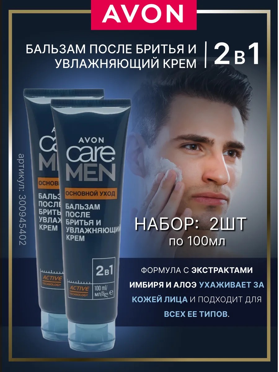 AVON Бальзам после бритья и увлажняющий крем 2 в 1 - 2шт по 100мл