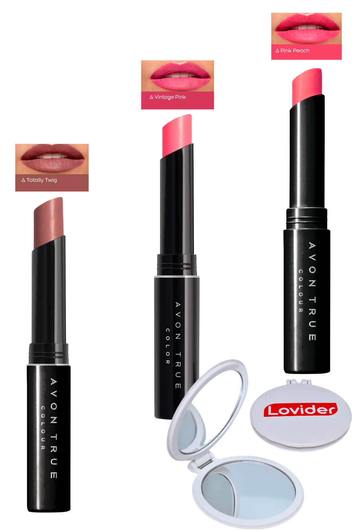 Avon Beauty 3-Pack Lipstick - Totally Twig + Vintage Pink + Pink Peach + Pocket Mirror