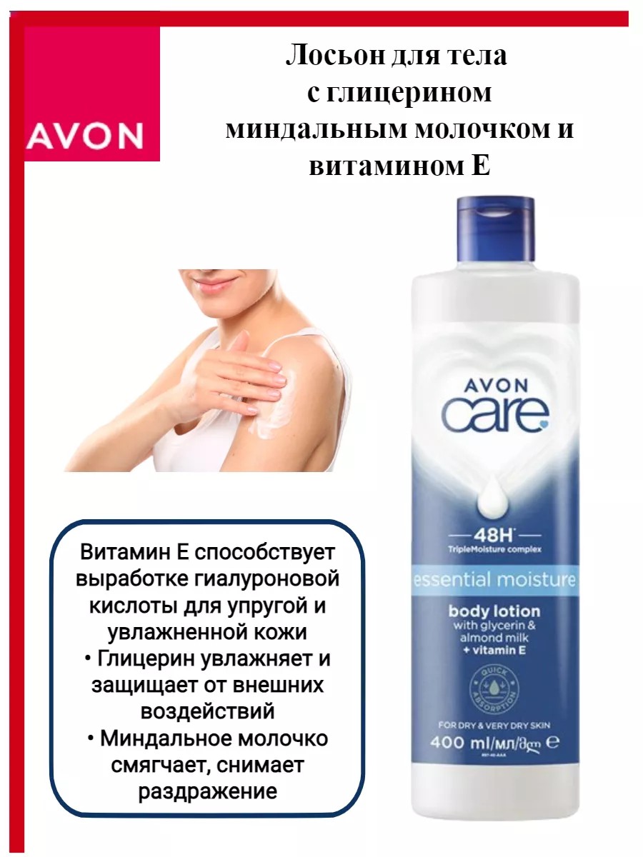 Увлажняющий лосьон для тела с глицерином, миндальным молочком и витамином Е, 400 мл. Эйвон.