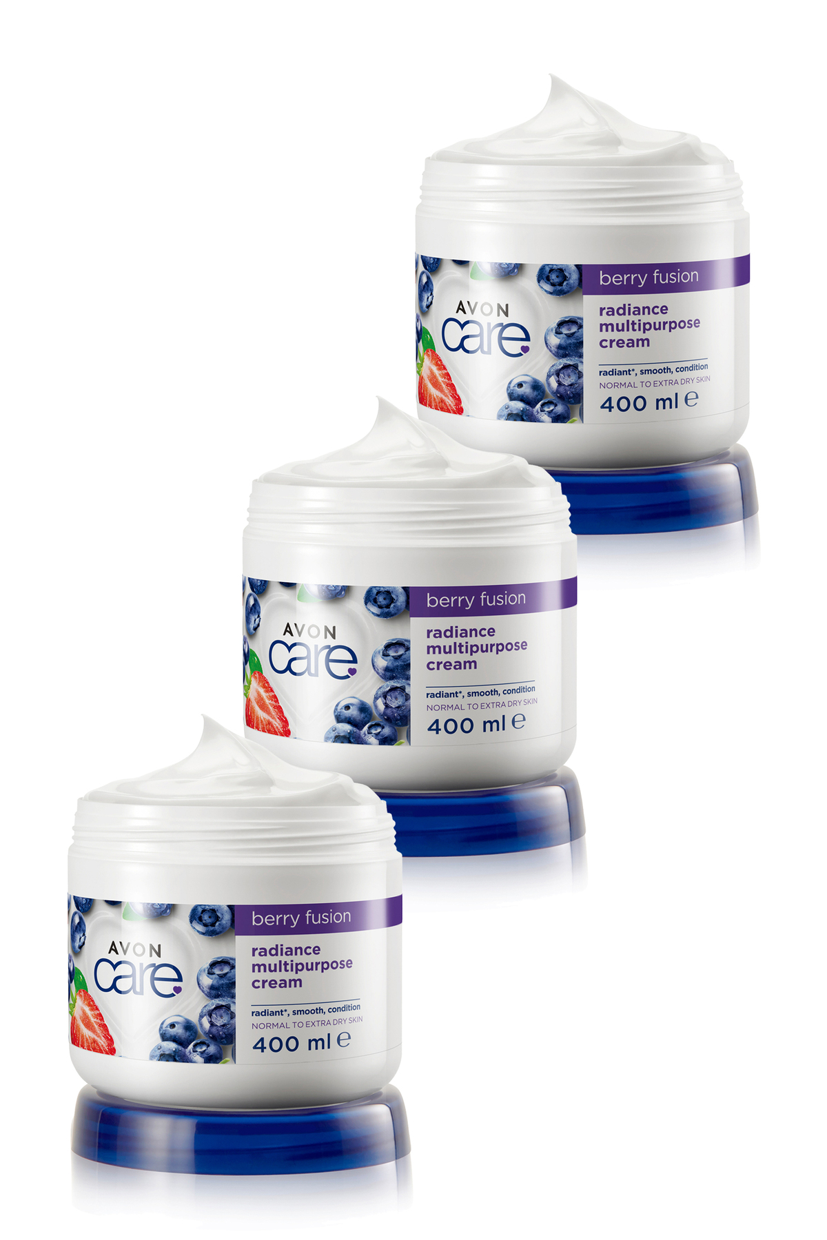 Avon Care Blueberry and Strawberry Extract Hand Face and Body Cream - 400ml Triple Set
