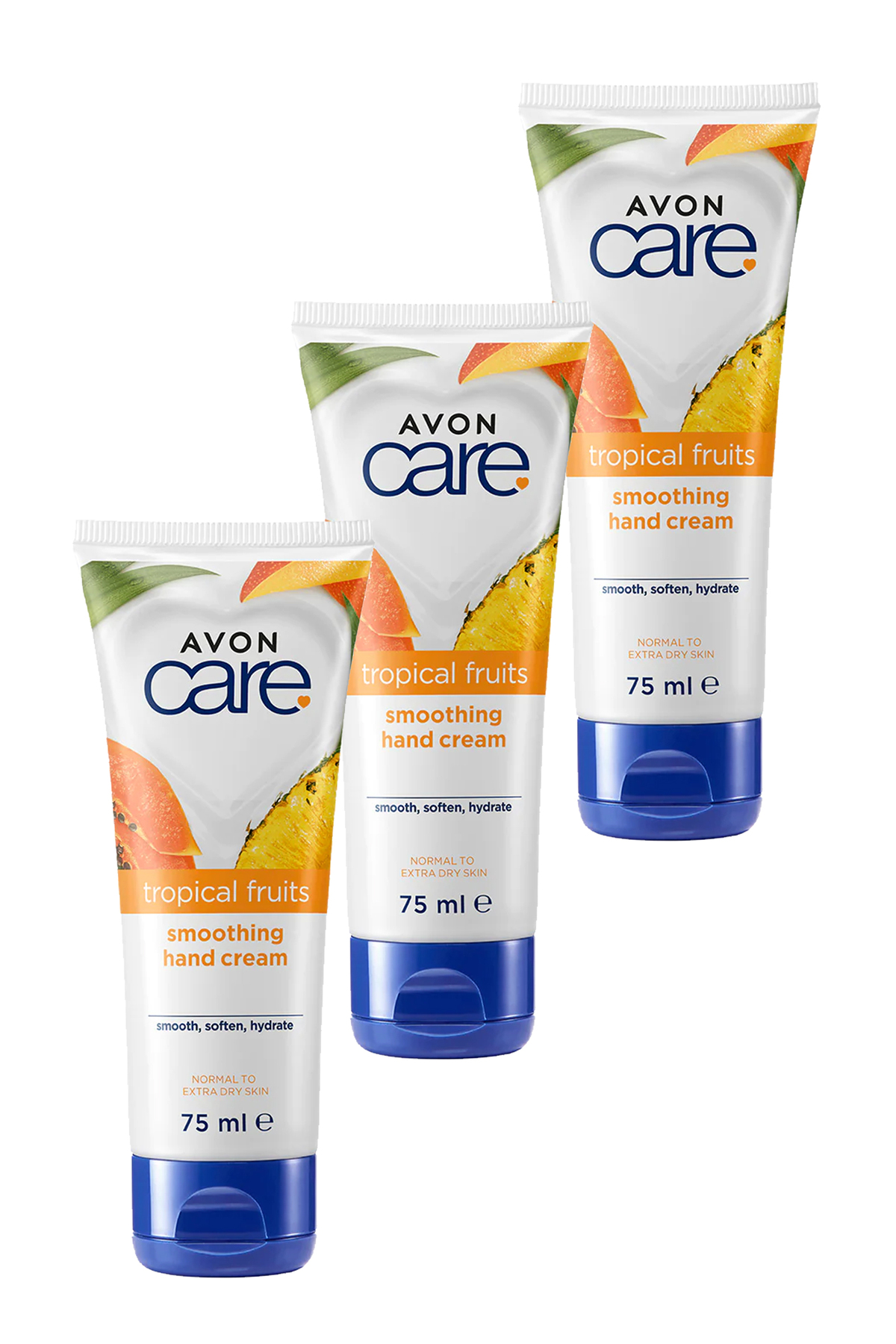 Avon Care Tropical Fruits Pineapple Mango and Papaya Extract Hand Cream 75 Ml. Set of Three