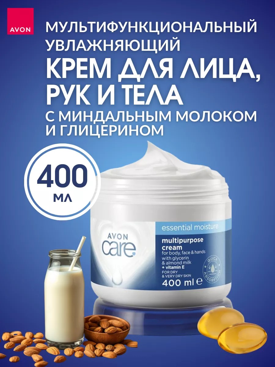 Легкий крем Avon care с миндальным молочком разработан специально для глубокого и длительного увлажнения кожи.
