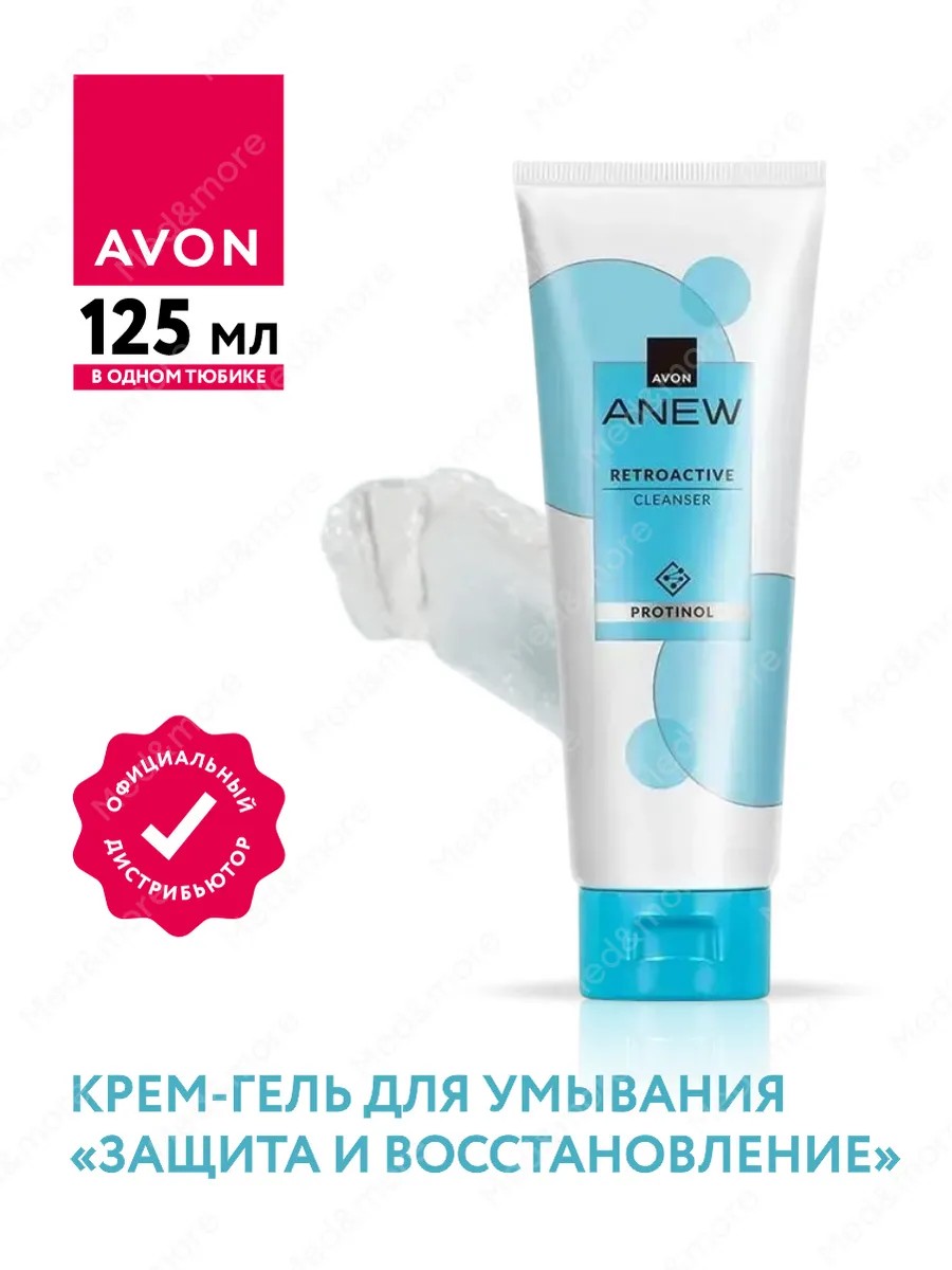 Avon Protection and Restoration Cream-Gel Cleanser, 125 ml. The gentle, rich foam of this cream-gel cleanser effectively cleanses and removes makeup, rinses off easily, and doesn't tighten the skin. The patented amino acid Protinol helps increase the production of two types of collagen in the skin and strengthen it. Marine ingredients: plankton and seaweed extracts soothe and moisturize the skin. A peptide helps strengthen the skin's protective barrier. Suitable for all skin types. For maximum effect, use in combination with other products from the Protection and Restoration collection. Directions: Use twice daily, morning and evening: apply to damp hands and rub until a thick lather forms. Then massage your face and rinse thoroughly with water.