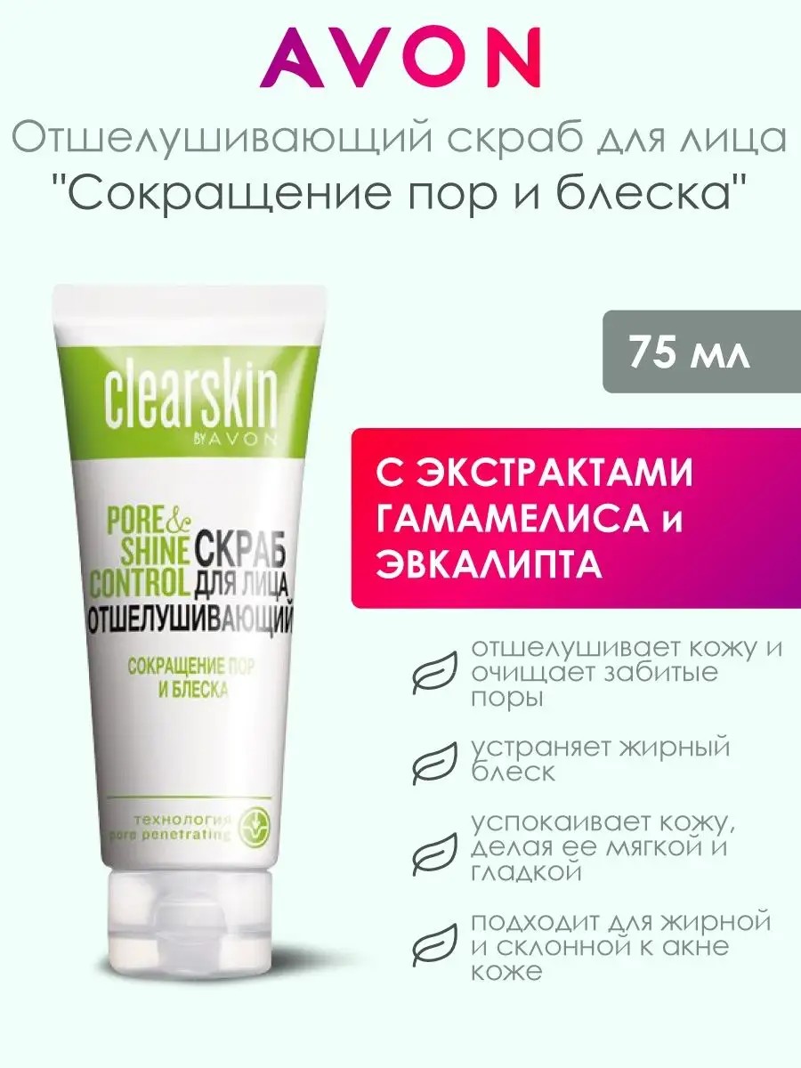 Exfoliating Facial Scrub for Acne and Blackheads - Women's Skincare. This exfoliating facial scrub is a lifesaver for boys and girls suffering from breakouts. It's designed for oily and combination skin in teenagers prone to acne. The scrub contains organic ingredients, including aloe extract, which has a soothing effect, and chamomile, which cleanses and fights bacteria that cause inflammation. It effectively removes impurities, makeup residue, and blackheads, tightening pores and evening out skin tone, leaving skin beautiful and healthy. The scrub's fine particles gently exfoliate without irritating or drying out skin. For a more effective result, use the gel, mask, and toner from the Avon line together. A great gift idea for your wife, friend, husband, or acquaintance. Directions: After removing makeup and cleansing, massage into face for several minutes, then rinse with water. Not suitable for daily use or for the skin around the eyes. Avoid contact with hair and scalp.