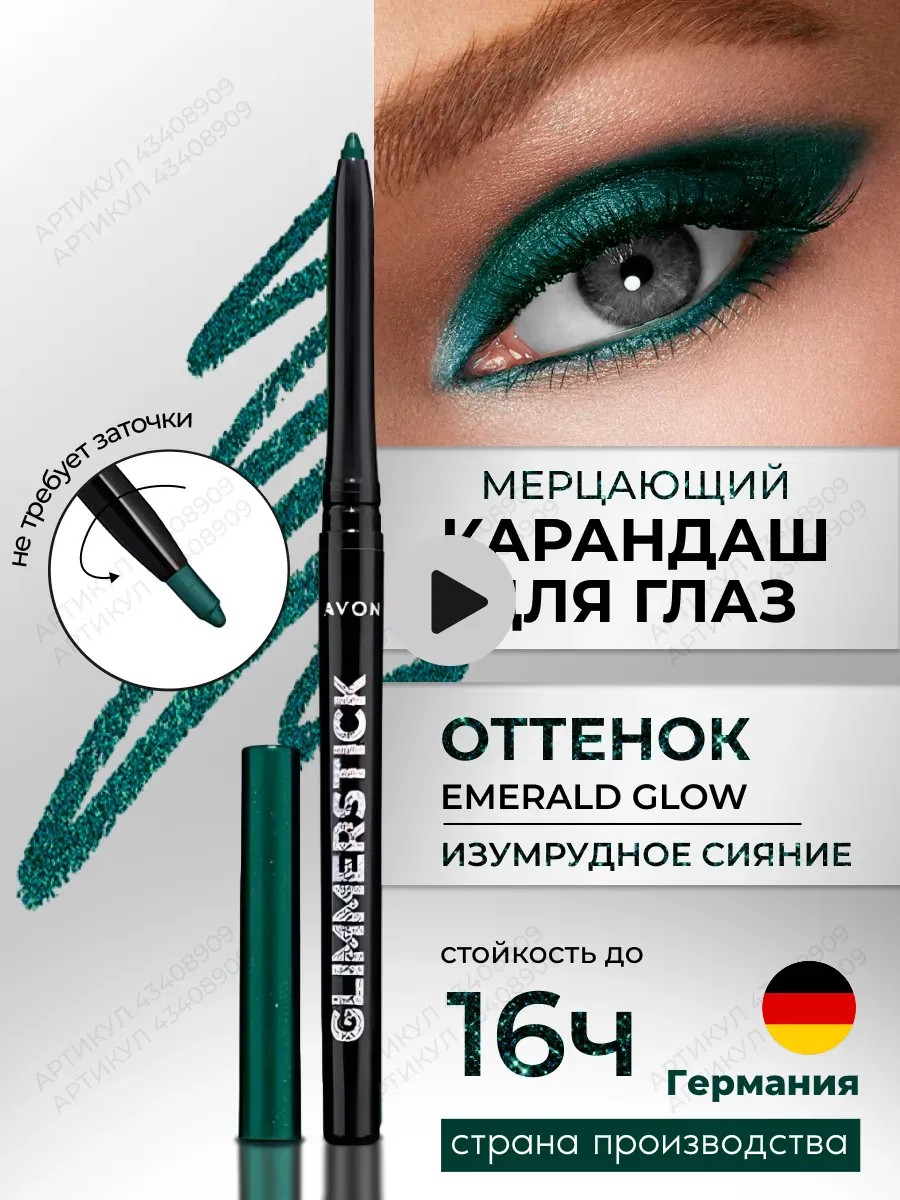 Карандаш для глаз Glimmerstick оттенок «Изумрудное сияние» (Emerald glow) - незаменимый аксессуар в арсенале каждой женщины, стремящейся подчеркнуть свою красоту и выразить свою индивидуальность. Их называют "бриллиантовые стрелки". Они придадут вашему взгляду новое, яркое сияние. Наш изумрудный мерцающий карандаш для глаз Avon true - это настоящая находка для всех любительниц макияжа. Он обладает рядом превосходных характеристик, которые делают его незаменимым помощником в создании идеального образа. Во-первых, наш карандаш имеет автоматический механизм, что обеспечивает его удобство и практичность в использовании. Больше не нужно тратить время на заточку карандаша. Во-вторых, наш мягкий зеленый карандаш обладает стойкой и водостойкой формулой, что гарантирует его долговечность и сохранение идеального макияжа в течение всего дня. Вы можете быть уверены, что ваш макияж не смажется и не растечется даже в условиях повышенной влажности или при физической активности. Кроме того, наш механический карандаш имеет контурную форму, что обеспечивает его удобство в нанесении и позволяет легко и точно подчеркнуть контуры глаз. Вы сможете создать идеальный макияж в несколько движений, без лишних усилий и временных затрат. Карандаш для глаз выкручивающийся создан для рисования безупречных четких стрелок на верхнем и нижнем веке. Стойкий гелевый карандаш для глаз от Эйвон - это идеальный выбор для тех, кто ценит качество, удобство и стиль. Подводка для глаз поможет вам выразить свою индивидуальность, подчеркнуть красоту глаз и создать неповторимый образ. Попробуйте наш карандаш для глаз с блестками и убедитесь в его превосходстве сами! С нашей блестящей подводкой Вы будете сверкать! Разнообразная цветовая палитра карандашей поможет создать неповторимый образ для любого типа макияжа. В нашем официальном магазине Avon Вы найдете профессиональную женскую косметику для макияжа, уходовые средства, парфюмерию, разную продукцию на любой вкус.