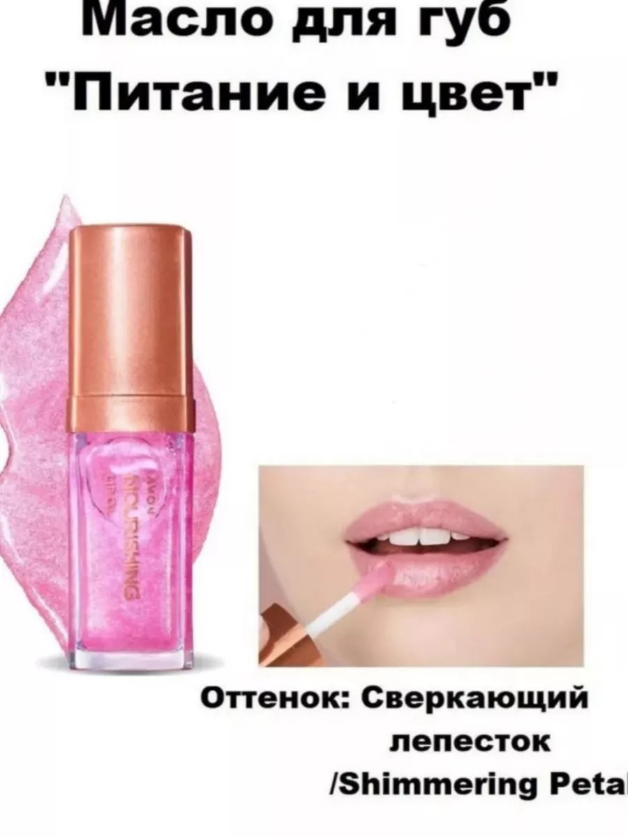 Масло для губ "Питание и цвет" Shimmering Petal. Питательный комплекс для губ обогащено питательными маслами жожоба, авокадо и кокоса , а также витамином Е для сохранения влаги. Увеличивает увлажненность губ 3 раз.