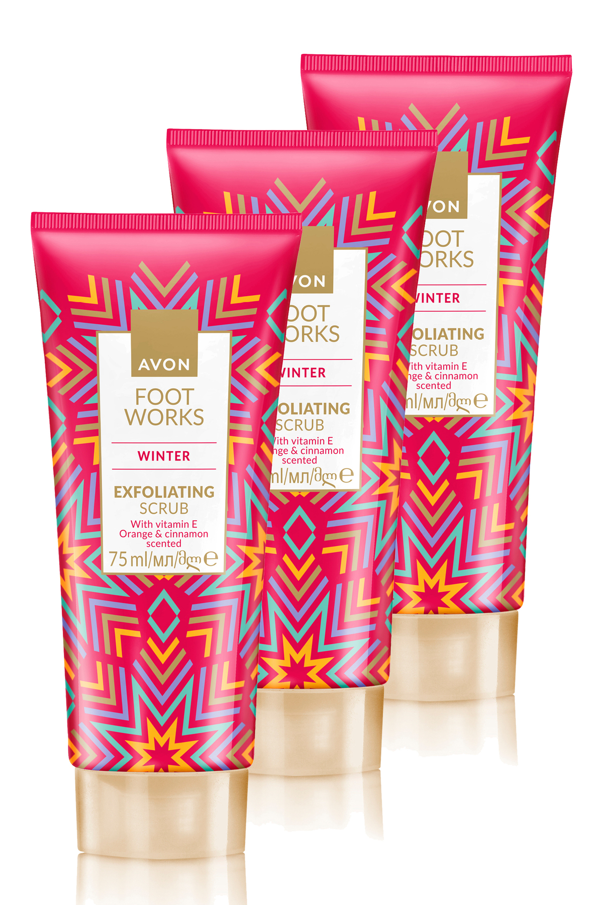 Avon Foot Work Winter Orange and Cinnamon Scented Vitamin E Foot Scrub 75 Ml. Triple Set