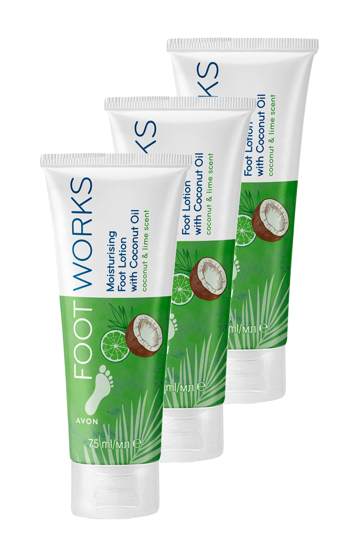 Avon Footworks Coconut and Lime Essence Foot Lotion 75 Ml. Set of Three