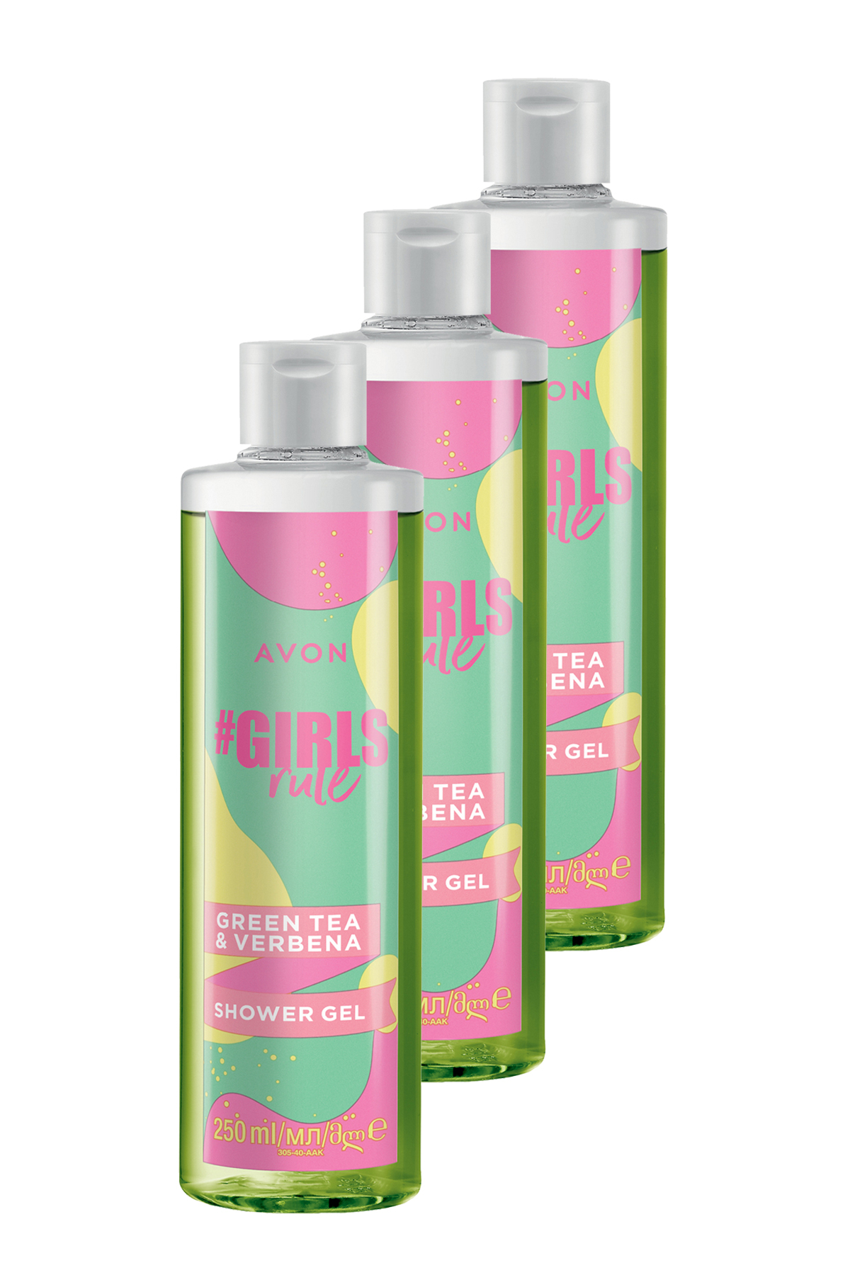Avon Girls Rule Verbena and Green Tea Scented Shower Gel 250 Ml. Triple Set