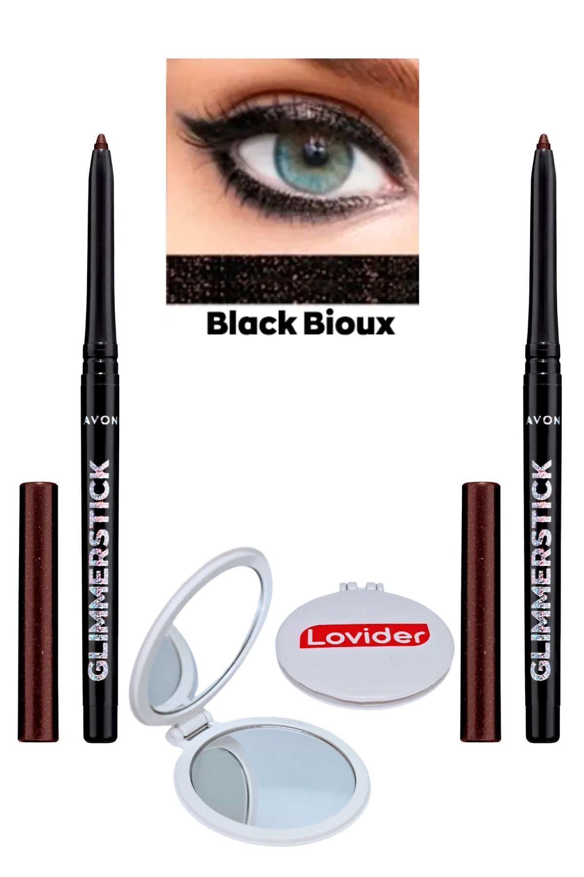 Avon Glimmerstick Lift Eyeliner Glitter - Black Bioux 2 Pack + Lovider Pocket Mirror