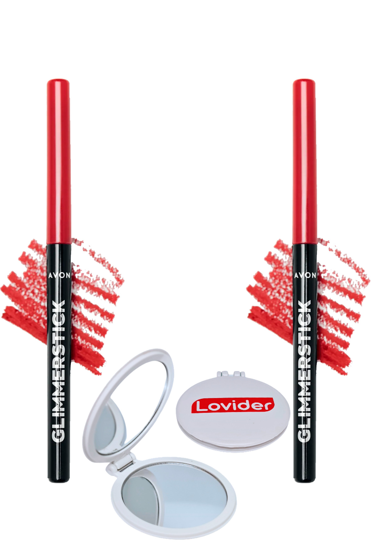 Avon Glimmerstick Lift Lip Pencil - Ruby Shock 2 Pack + Lovider Pocket Mirror Gift