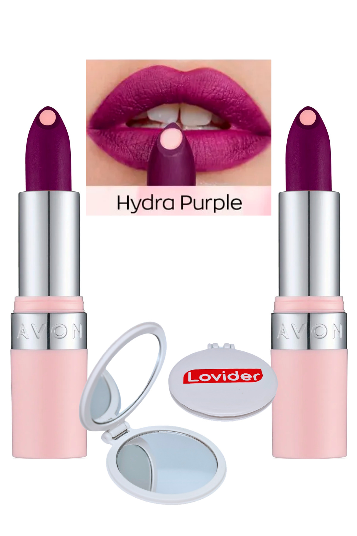 Avon Hydramatic Matte Lipstick Purple 2 Pack + Lovider Pocket Mirror Gift