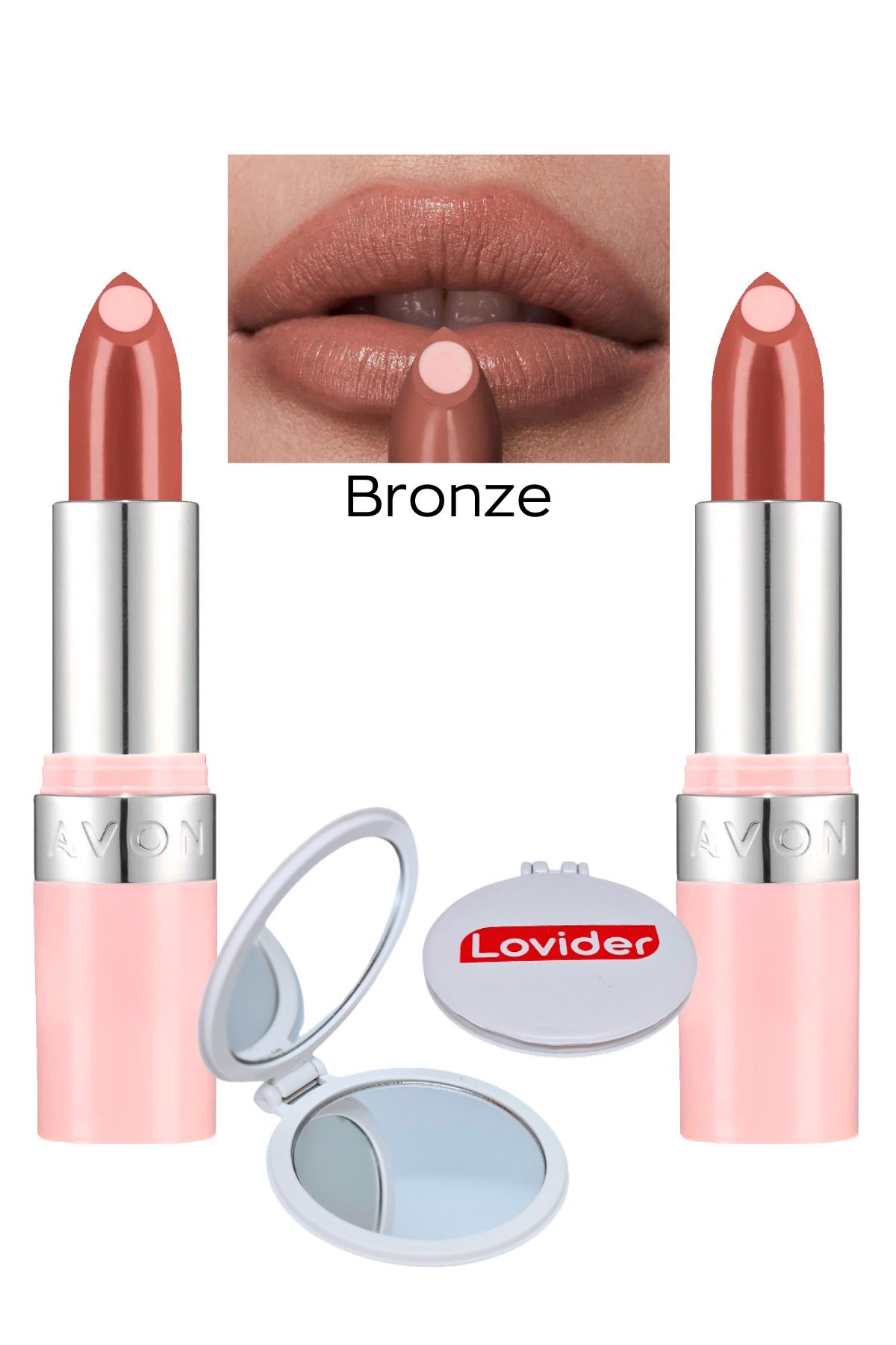Avon Hydramatic Shimmer Lipstick - Bronze 2 Pack + Lovider + Pocket Mirror
