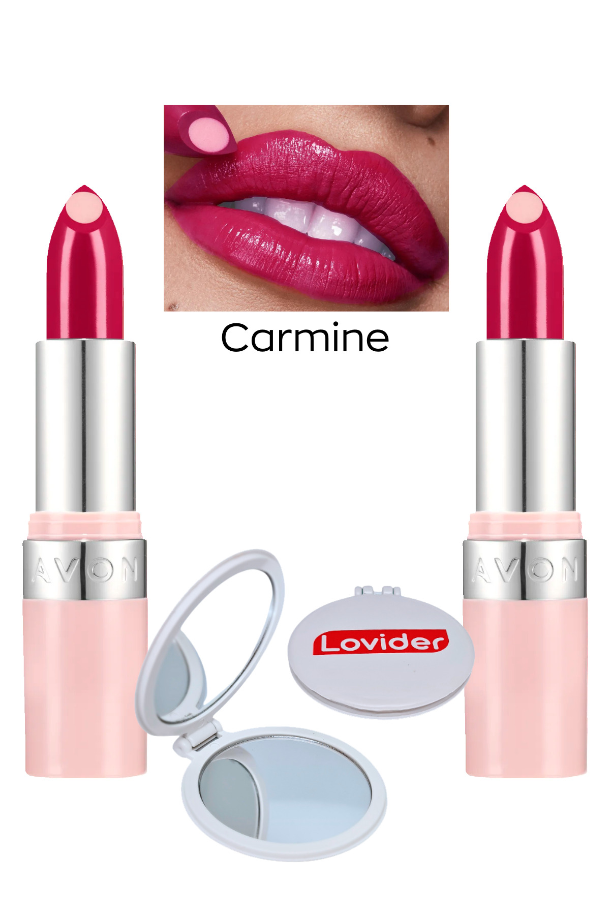 Avon Hydramatic Shimmer Lipstick - Carmine 2 Pack + Lovider Pocket Mirror