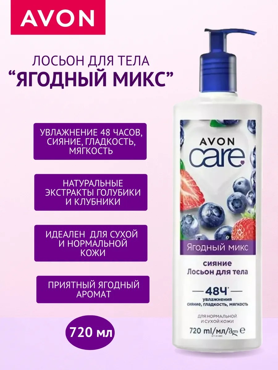 Подарите себе и своим близким настоящую заботу и удовольствие от сладкого ягодного аромата с лосьоном 3 в 1 от Avon. Он не только увлажняет, но и придает коже здоровое сияние, делает её гладкой и мягкой. Заботьтесь о своей коже с любовью и выбирайте только лучшее!