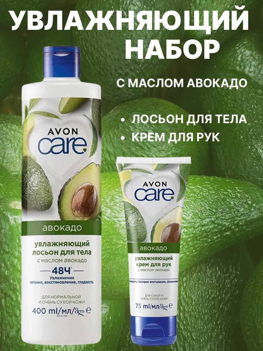 | Комплектация | Крем для рук с маслом авокадо, 75 мл - 1 шт; лосьон для тела с маслом авокадо, 400 мл - 1 шт; Набор для ухода за телом с маслом авокадо AVON CARE; набор для ухода за кожей; набор для ухода за телом Эйвон |