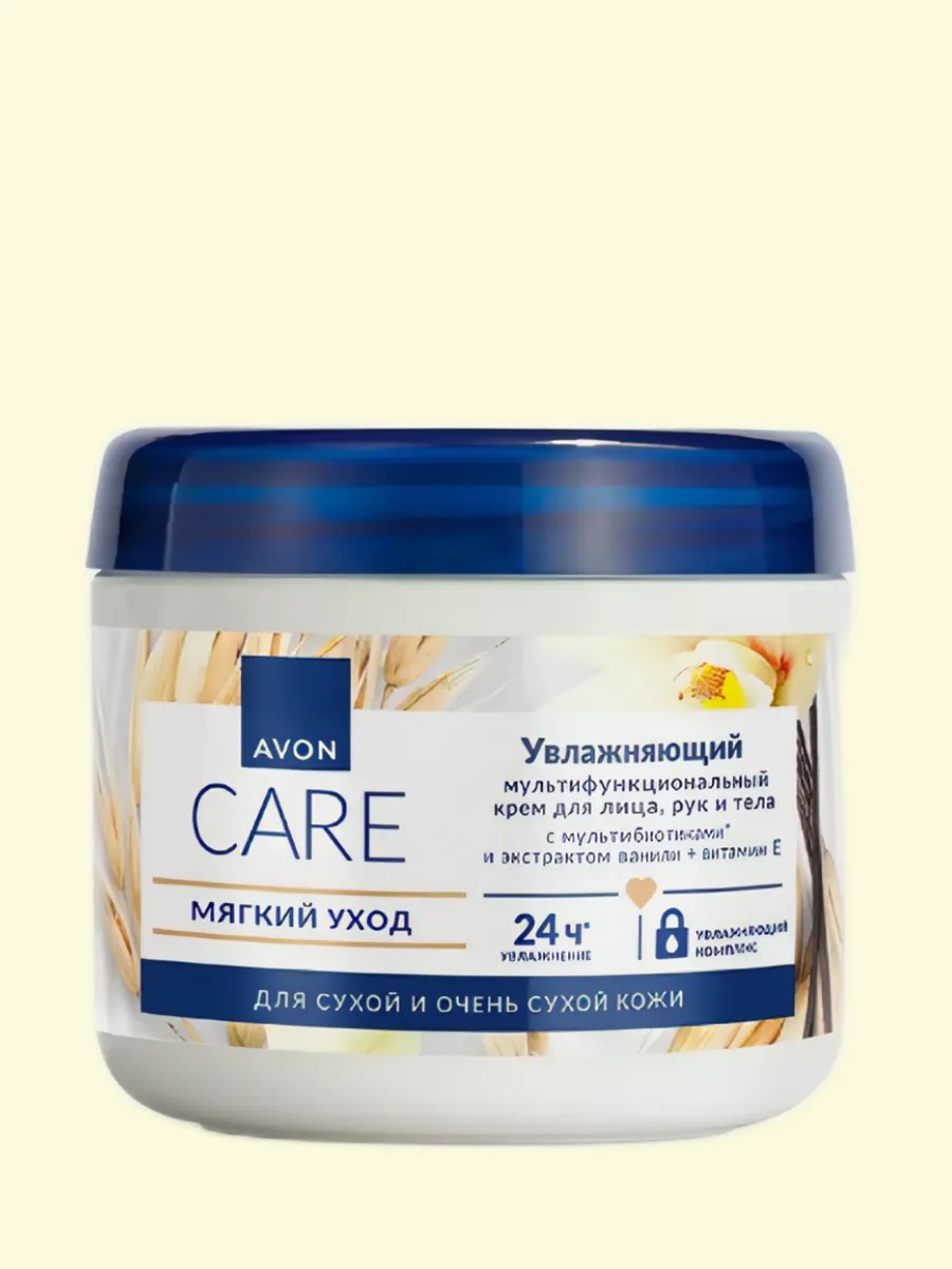 Avon Care эйвон кере мультифункциональный крем для лица, рук и тела «мягкий уход» - идеальный выбор для тех, кому важна здоровая, ухоженная кожа! Легкая формула крема для лица, рук и тела с мультибиотиками*, экстрактом ванили и витамином Е обеспечит деликатный уход для твоей кожи. Подарит длительное увлажнение, смягчит и разгладит кожу. Идеально подходит для сухой и чувствительной кожи лица и тела.