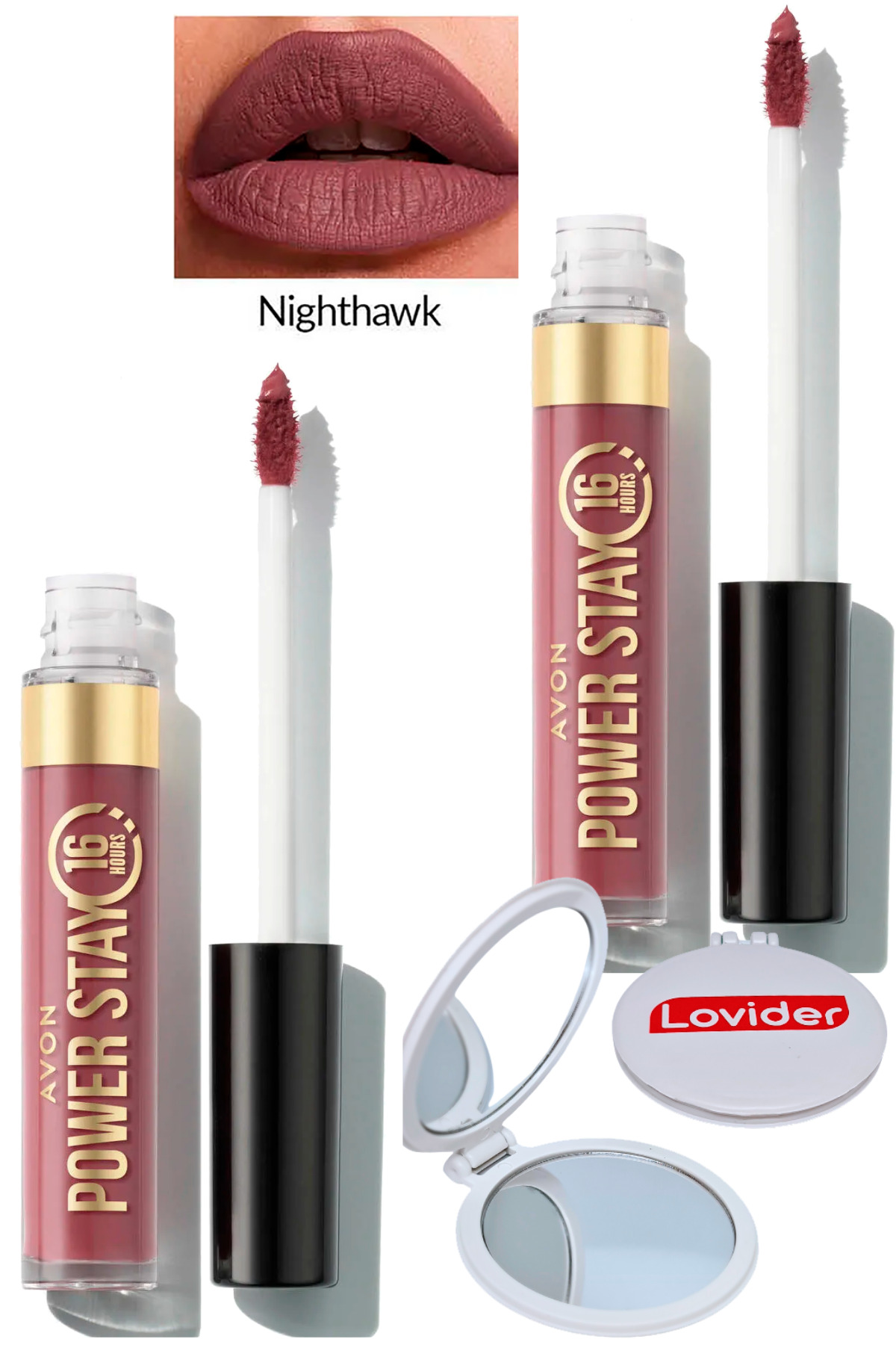 Avon Power Stay Liquid Matte Lipstick - Nighthawk 2 Pack + Lovider Pocket Mirror Gift