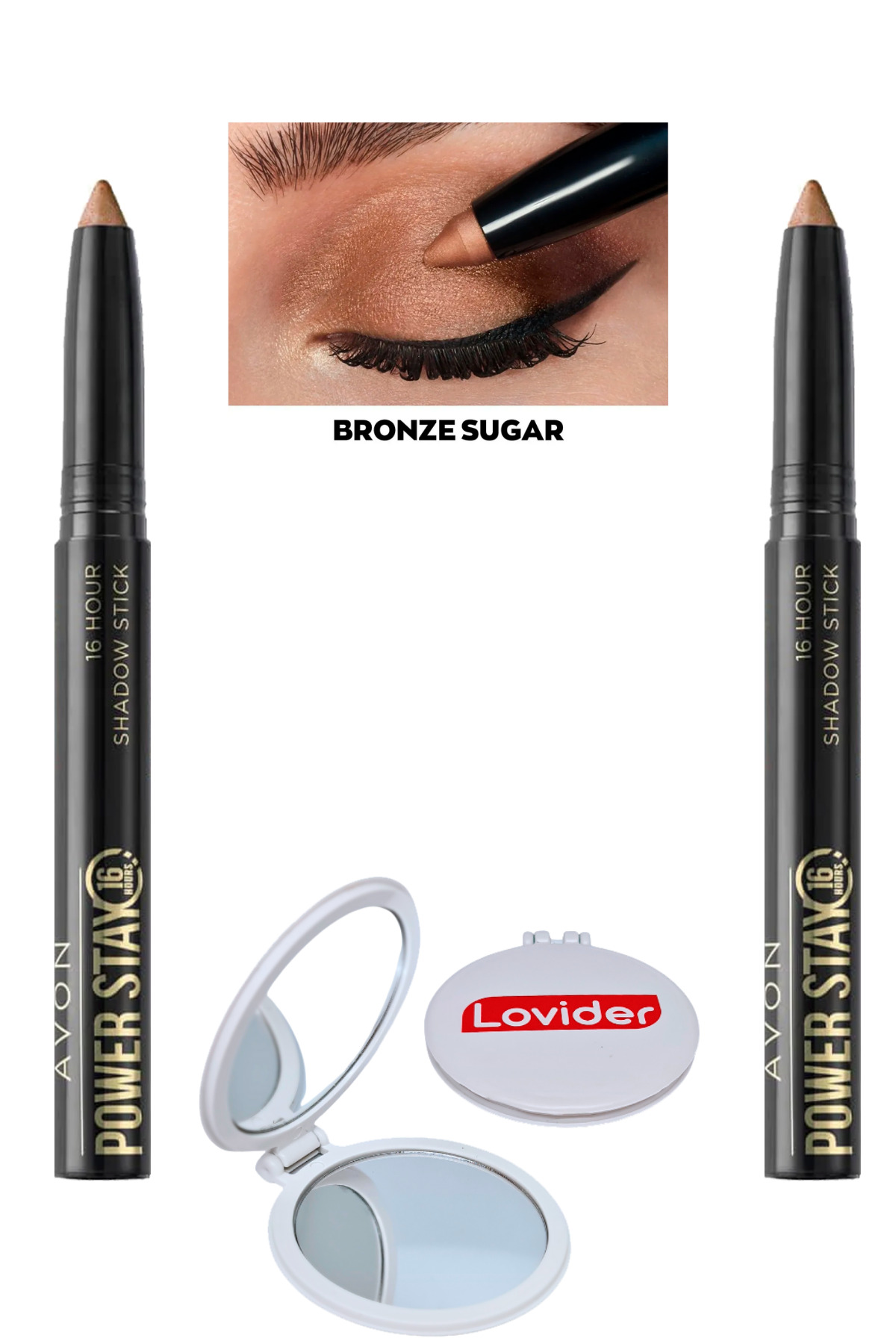 Avon Power Stay Shadow Stick Pencil Eyeshadow - Bronze Sugar 2 Pack + Lovider Pocket Mirror Gift
