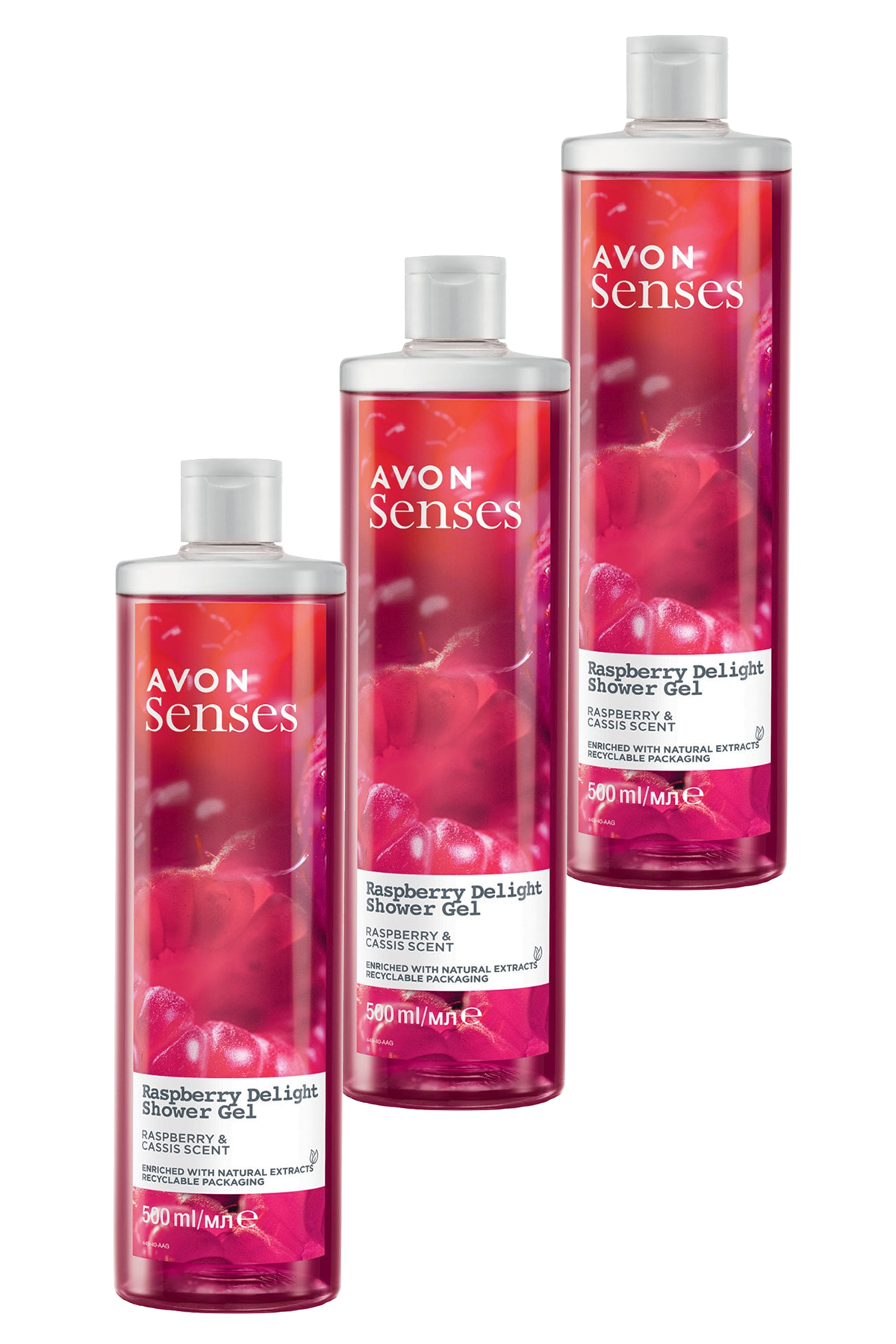 Avon Raspberry Delight Raspberry and Blackcurrant Scented Shower Gel 250 Ml. Triple Set