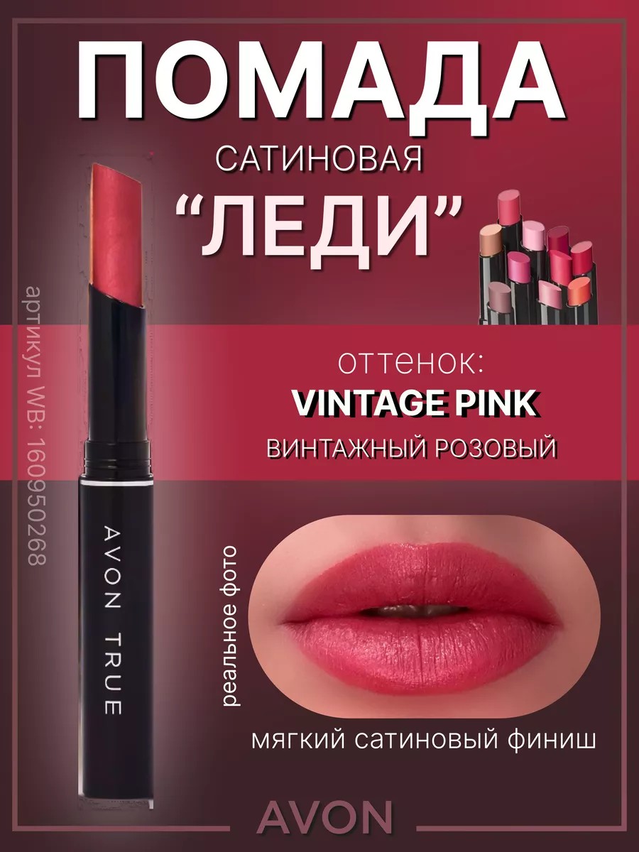Сатиновая помада "Леди" Винтажный розовый от Эйвон - это безупречное средство для создания яркого и стойкого макияжа губ. Ее формат в стике удобен в использовании, а сатиновый финиш придает губам элегантный и нежный вид.