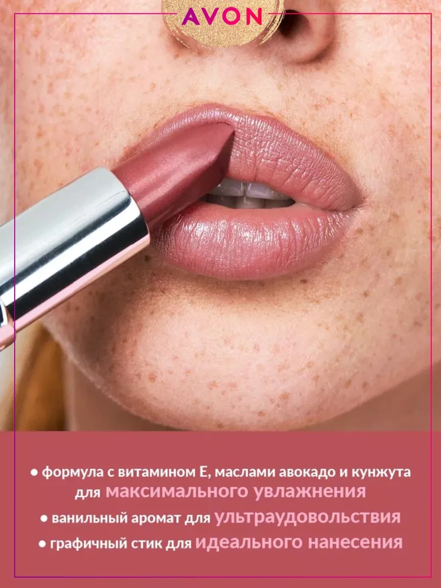 Губная помада Помада для губ Эйвон кремовая для макияжа декоративная косметика женская. Помада линейки Ультра - большой выбор оттенков, среди которых вы обязательно найдете свой. Сдержанные нюдовые тона, от коричневого до медного тона, а может быть, яркие розовые или красные? Все зависит от вашего настроения. В отличие от жидких помад, для ее нанесения не потребуется кисть, что крайне удобно. Помада в стике легко наносится, оставляя после себя мягкое глянцевое покрытие и насыщенный цвет. Она не сушит, не подчеркивает мелкие шелушения, отлично держится на губах, увлажняя и ухаживая за ними. Качественная альтернатива мегапопулярной помадам из раздела корейская косметика и белорусским производителям. Выберете свой оттенок или несколько - на каждый день и для особенного случая