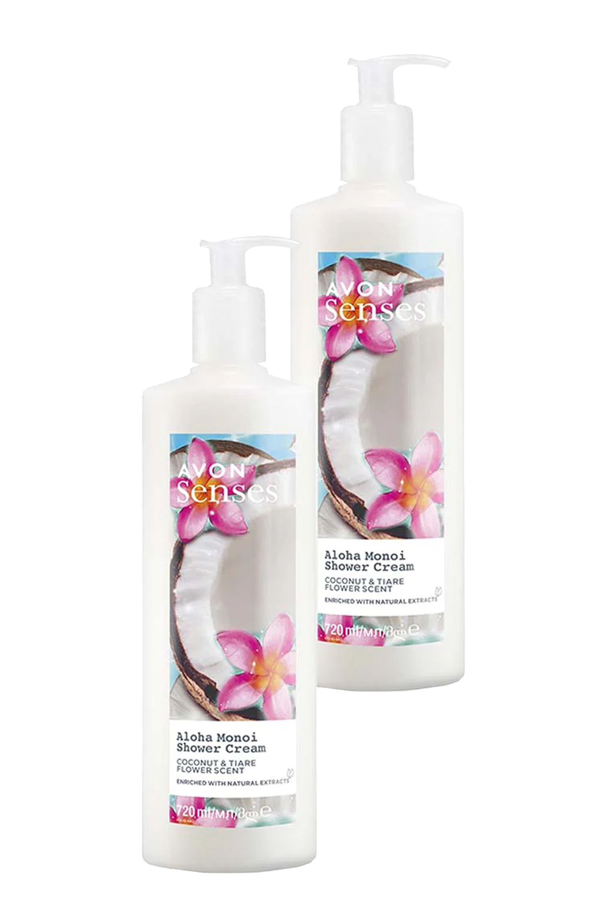 Avon Senses Aloha Monoi Tiare Flower and Coconut Scented Cream Shower Gel 720 Ml. Set of Two