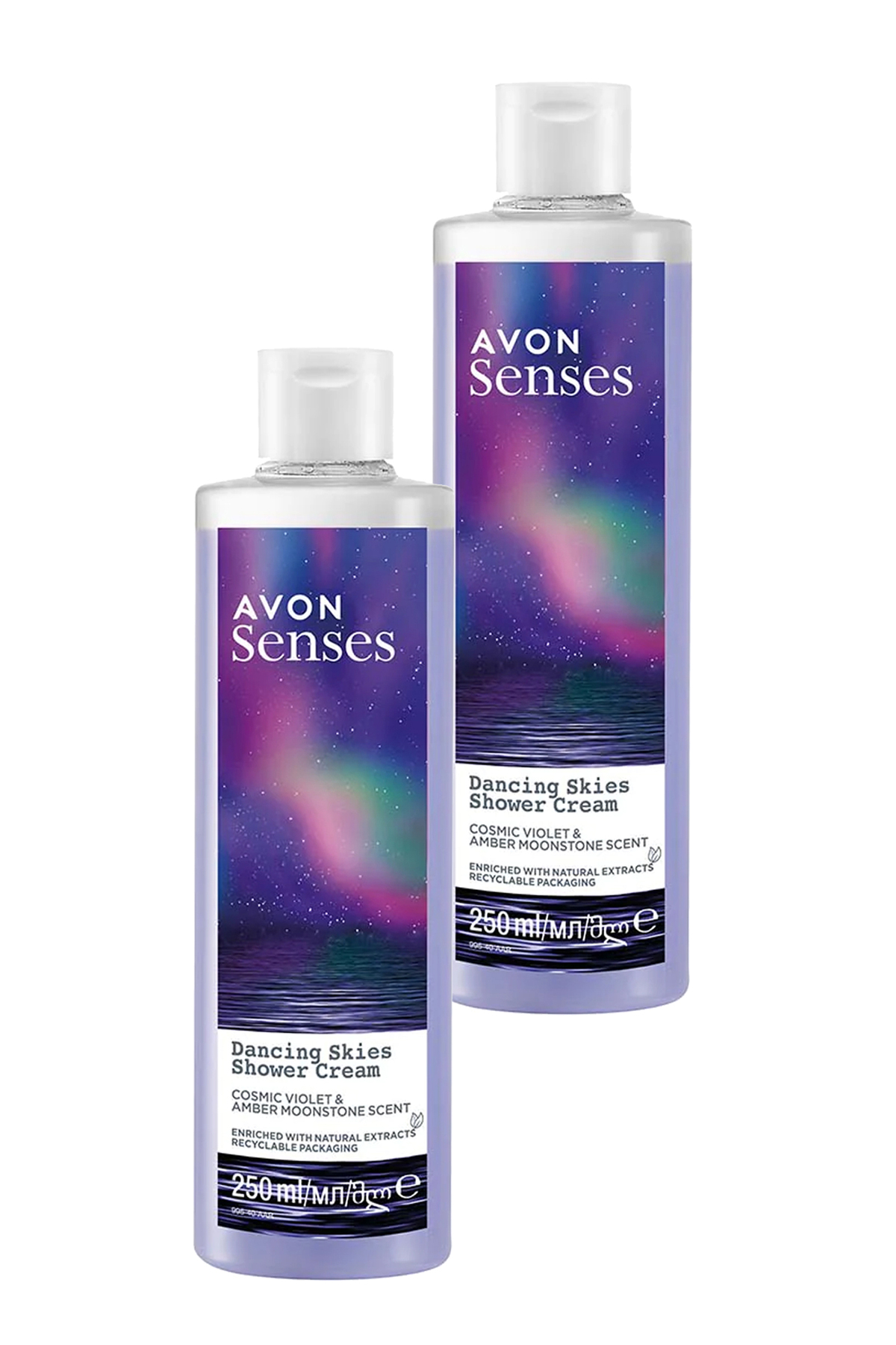 Avon Senses Dancing Skies Violet and Raspberry Scented Creamy Shower Gel 250 Ml. Set of Two