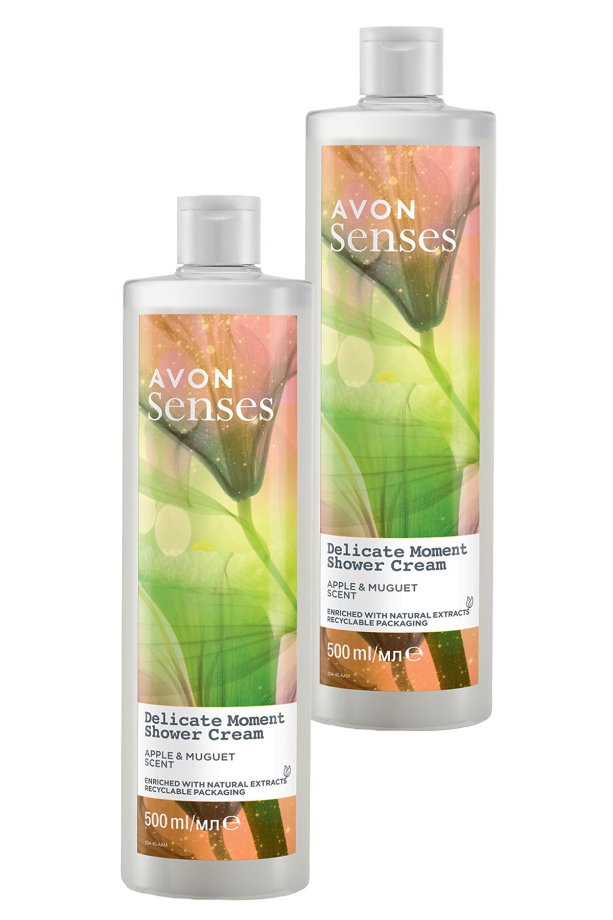 Avon Senses Delicate Moment Apple and Lily of the Valley Scented Cream Shower Gel 500 Ml. Set of Two