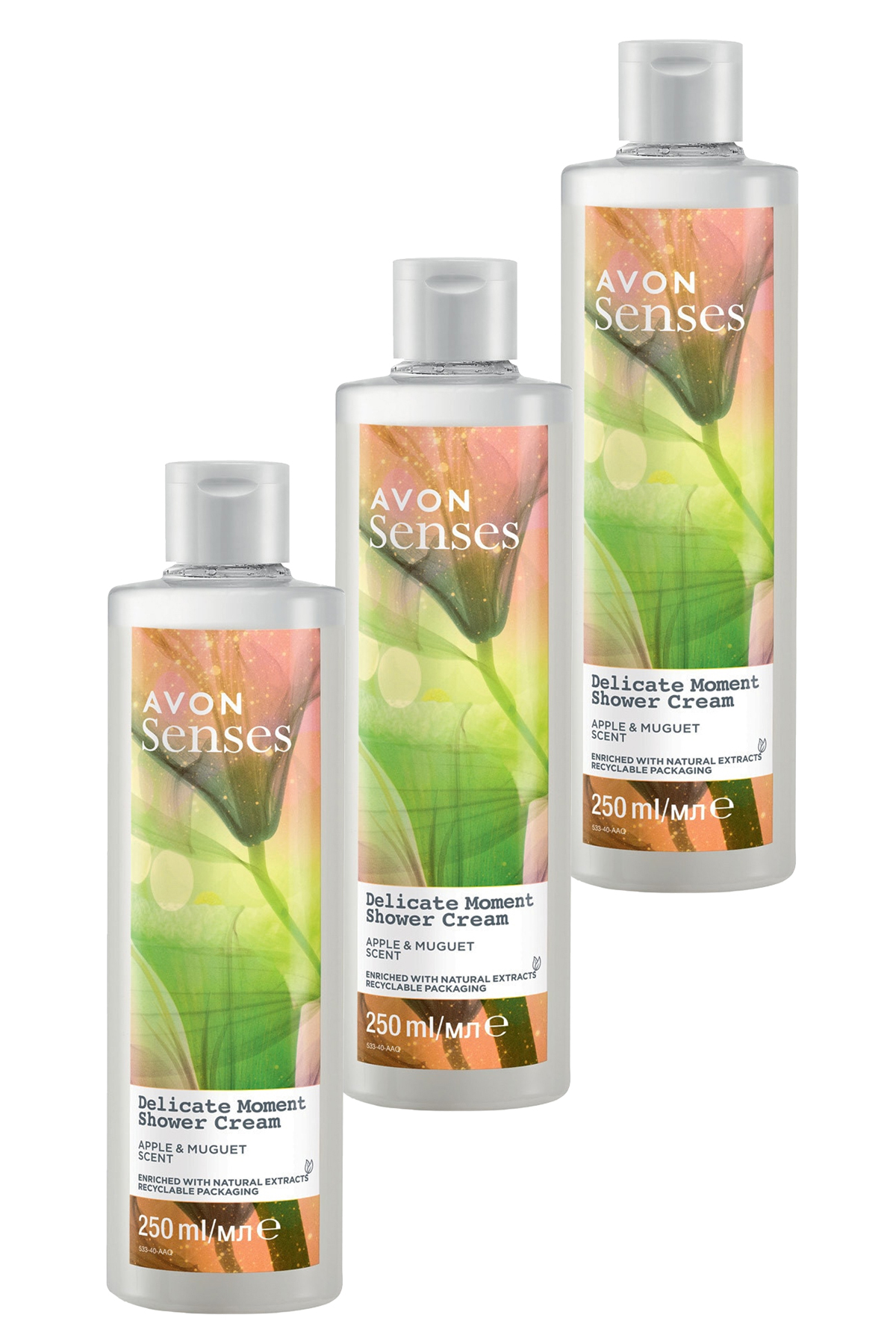 Avon Senses Delicate Moment Apple and Lily Scented Cream Shower Gel 250 Ml. Set of Three