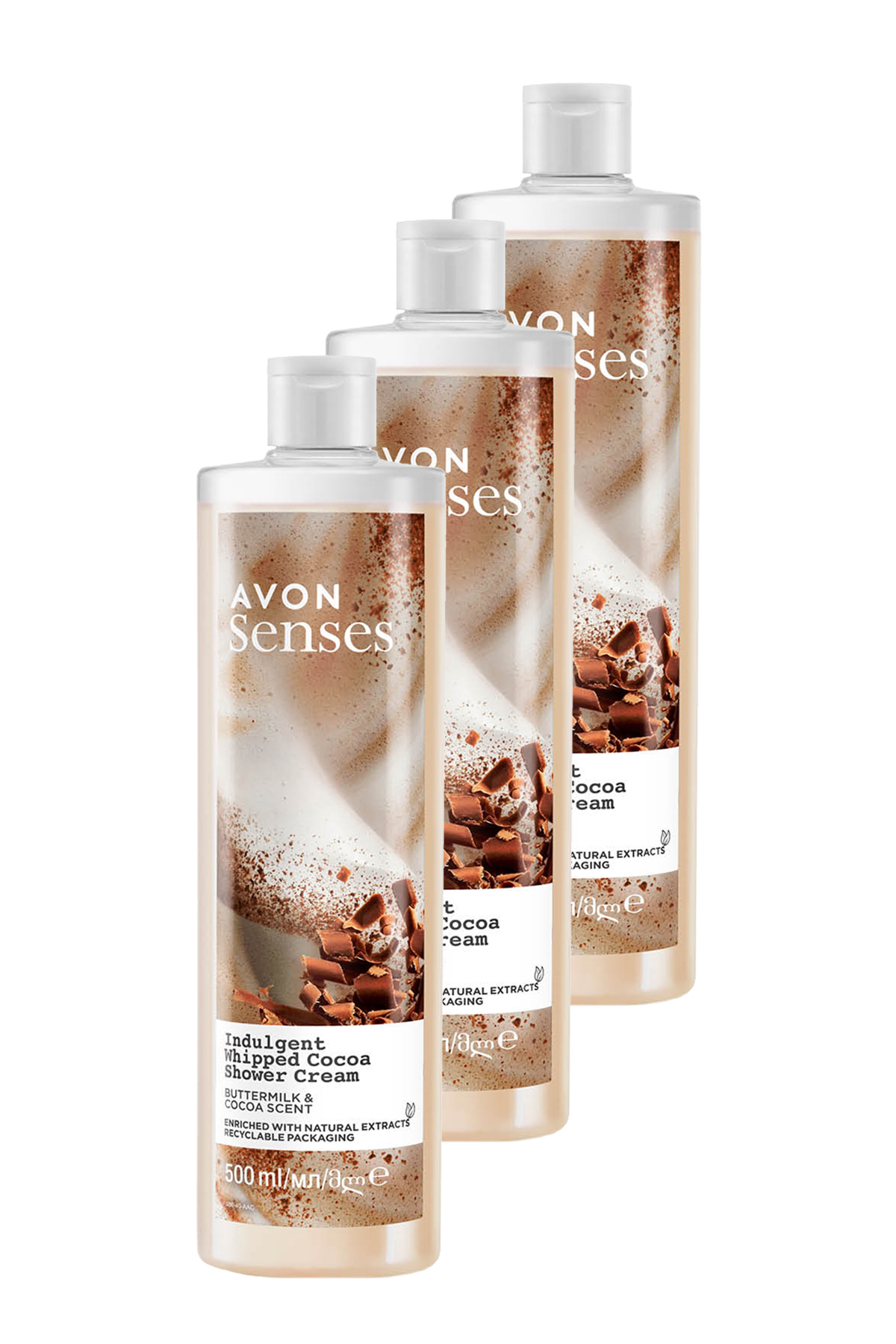 Avon Senses Indulgent Shower Cream with ButterMilk and Cocoa Extract 500 Ml. Triple Set