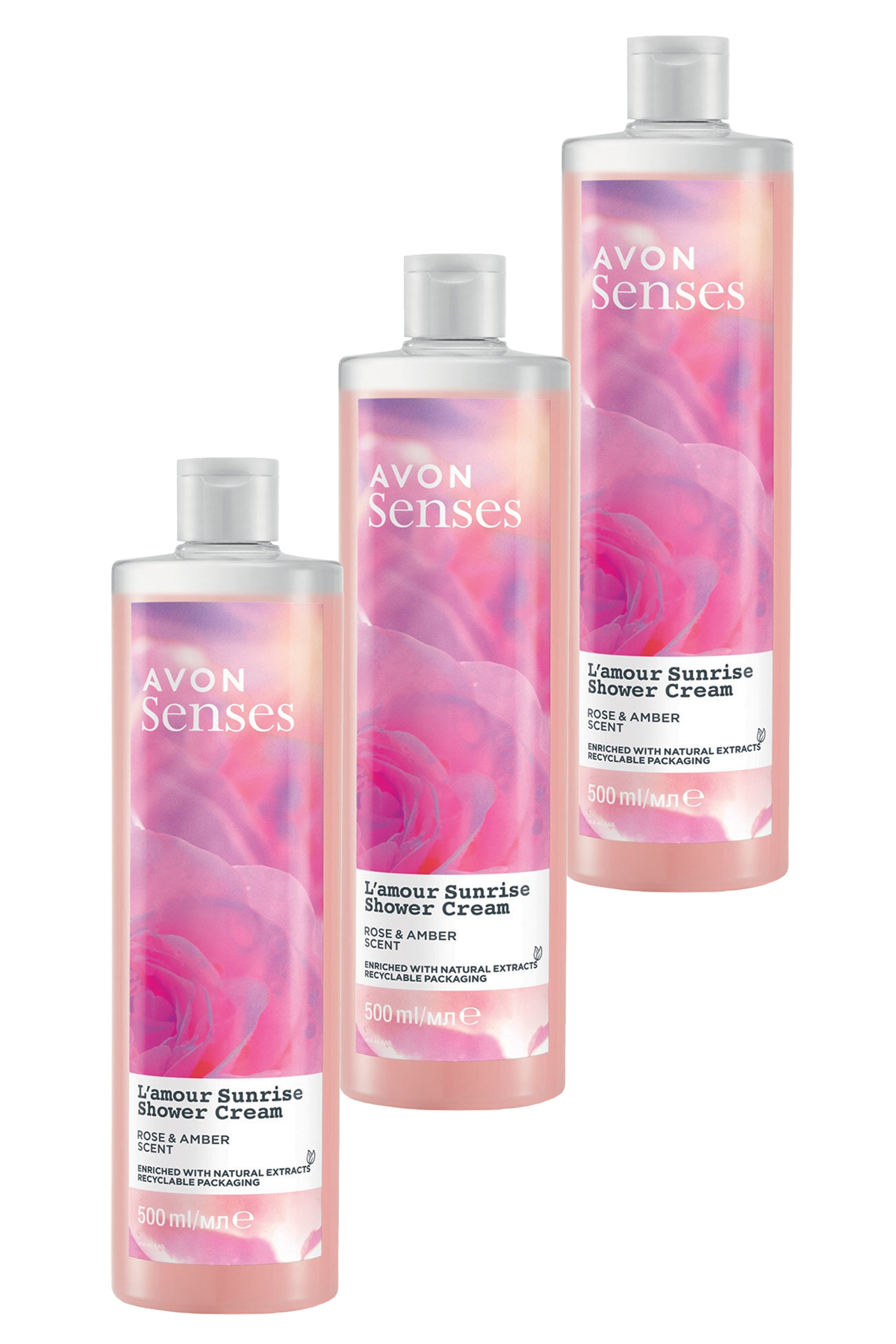 Avon Senses L'amour Sunrise Rose and Amber Scented Cream Shower Gel 500 Ml. Set of Three