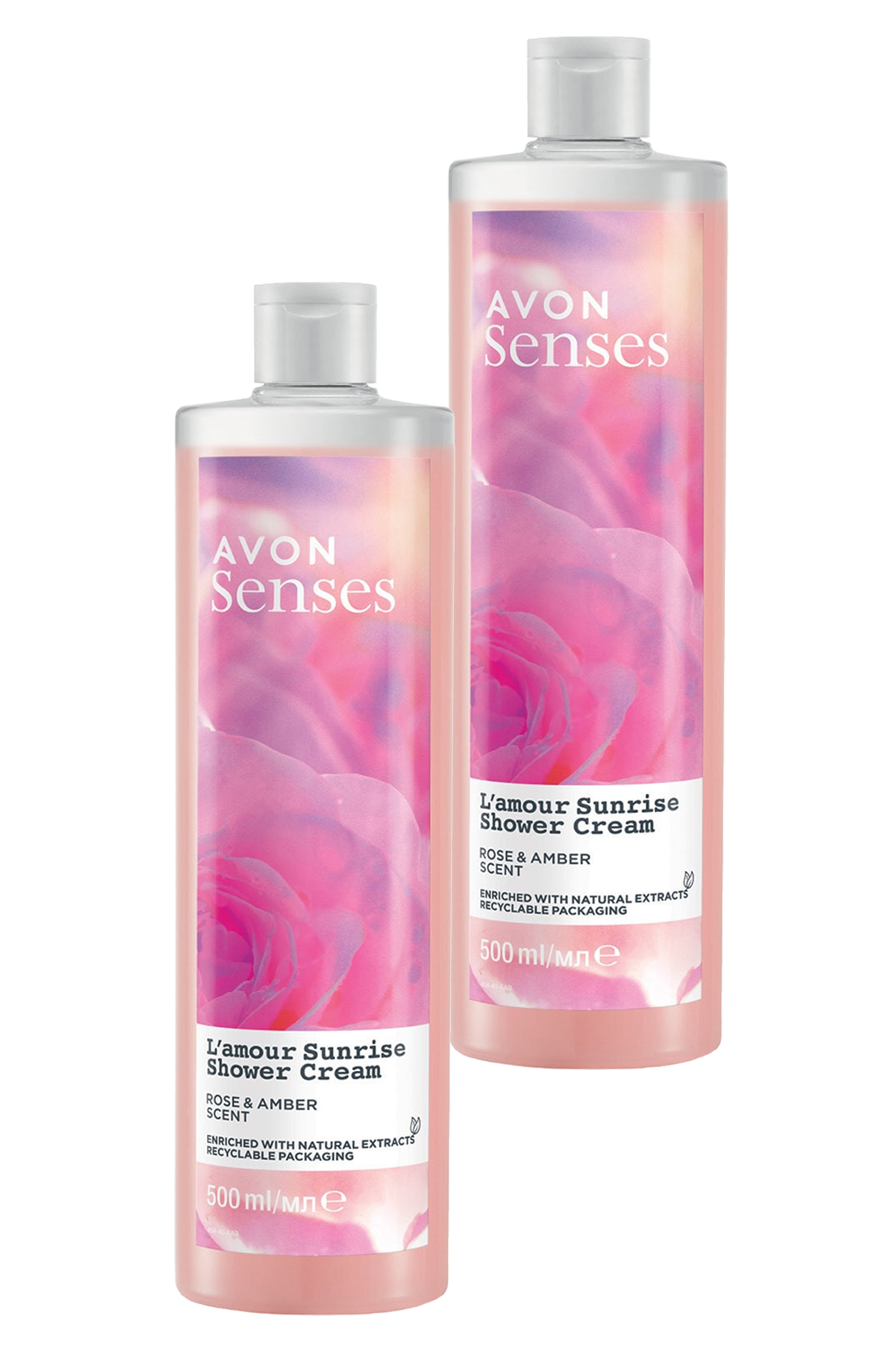 Avon Senses L'amour Sunrise Rose and Amber Scented Cream Shower Gel 500 Ml. Set of Two