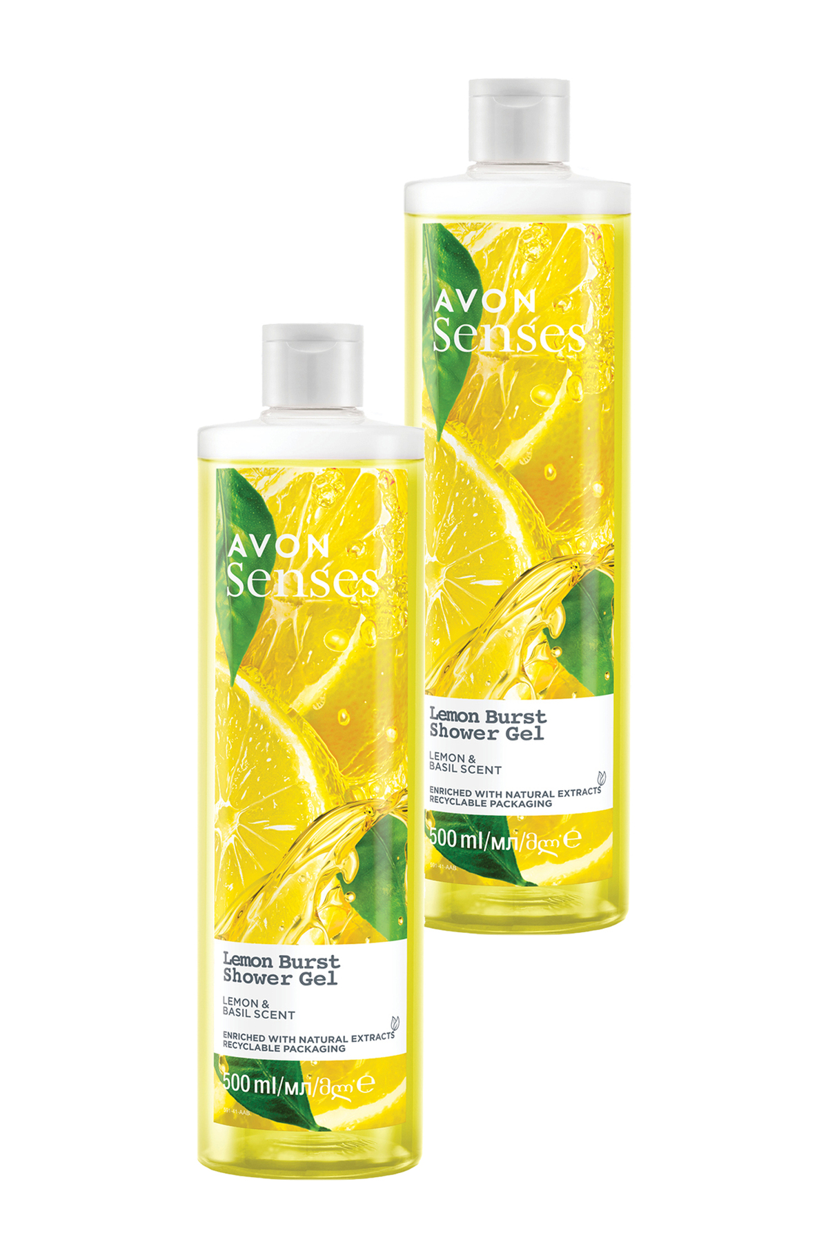 Avon Senses Lemon Burst Lemon and Basil Scented Shower Gel 500 Ml. Set of Two